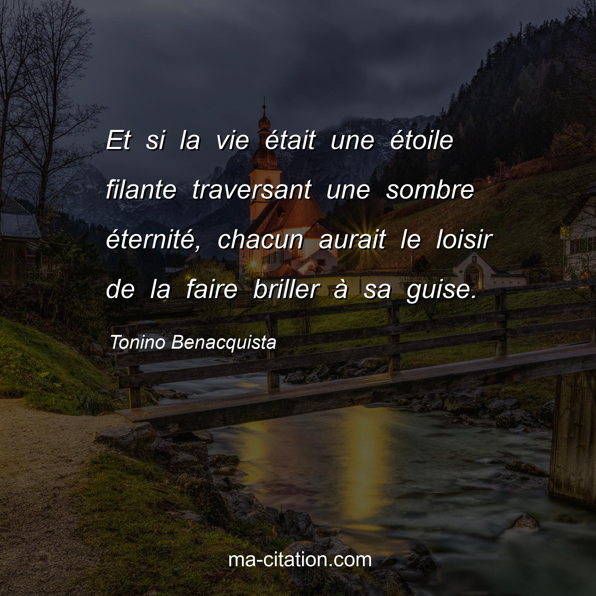 Tonino Benacquista est l'auteur de la citation sur la vie "Et si la vie était une étoile filante traversant une sombre éternité, chacun aurait le loisir de la faire briller à sa guise.".