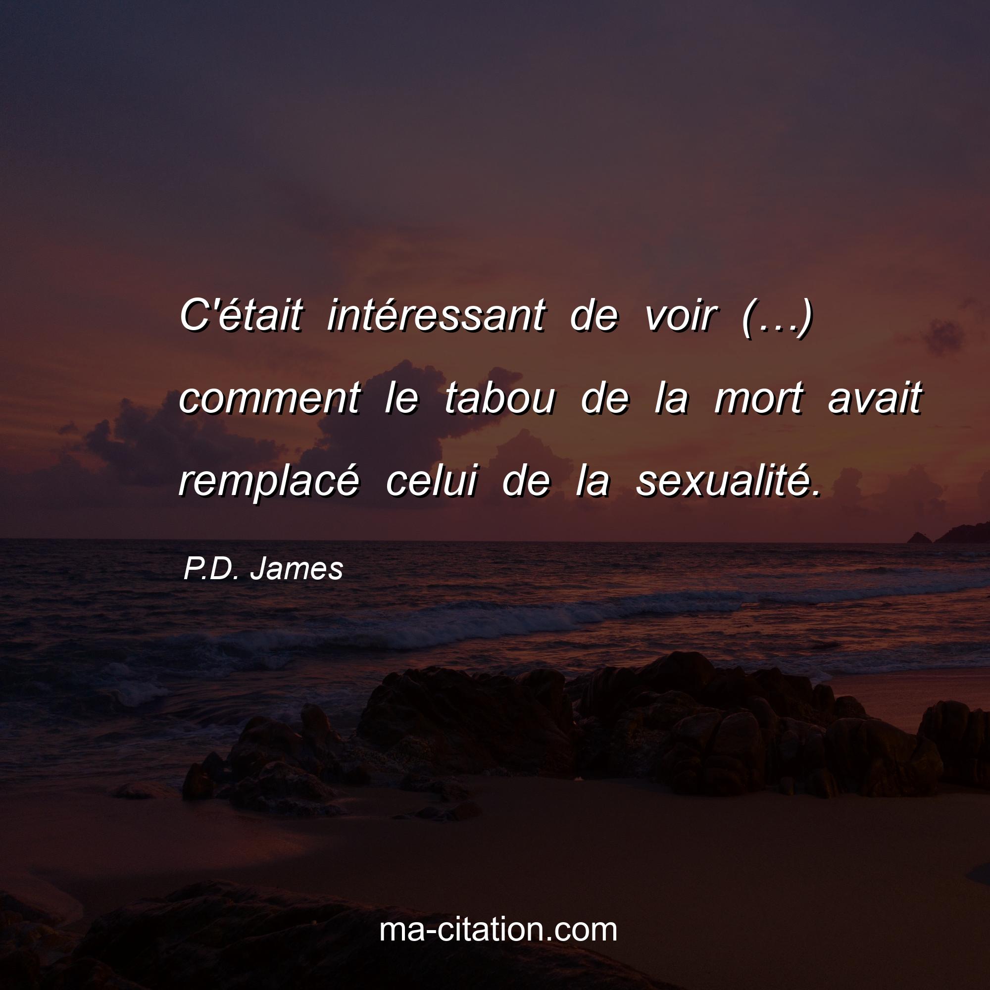 Citation sur la vie de P.D. James :C'était intéressant de voir (…) comment le tabou de la mort avait remplacé celui de la sexualité.