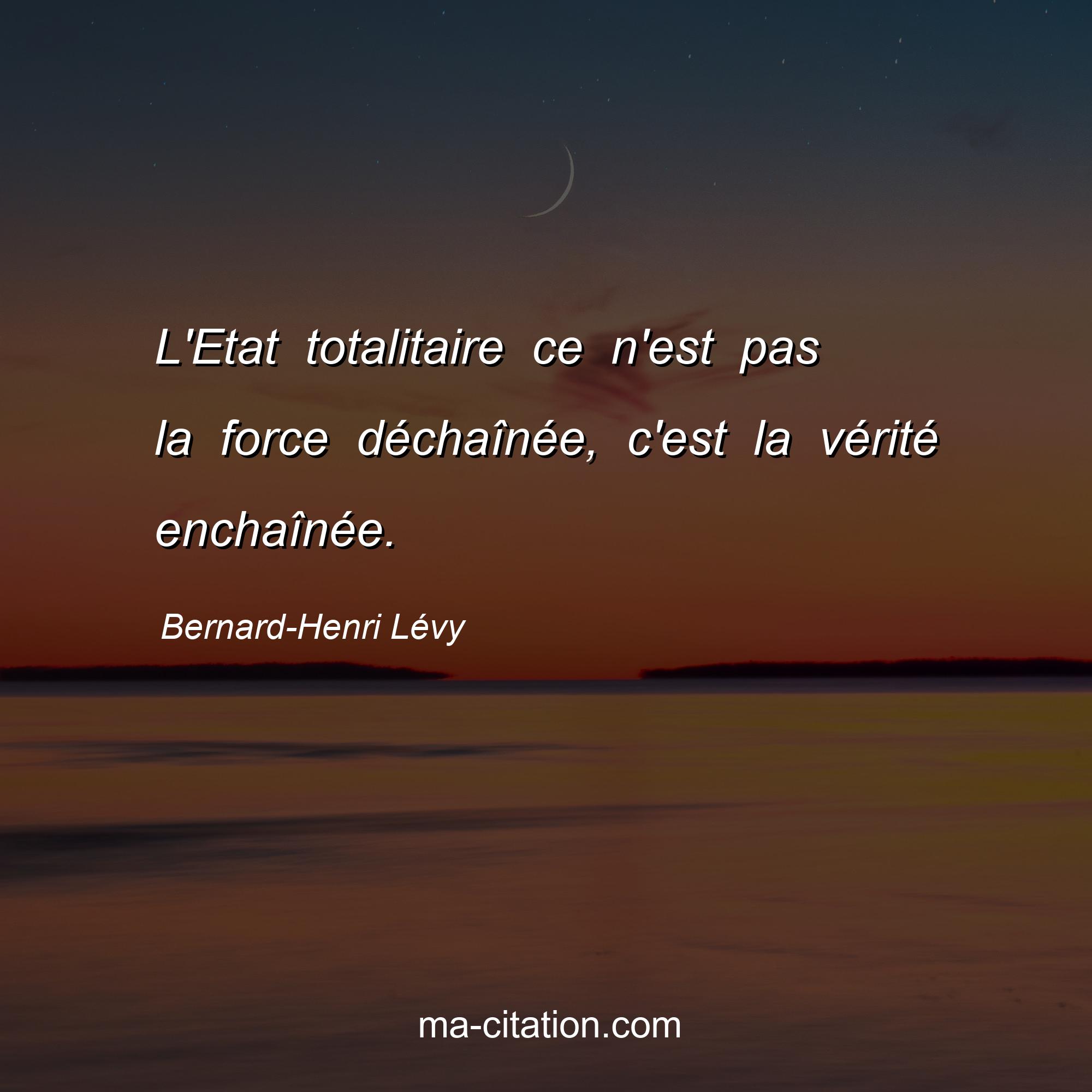 Citation sur la vie de Bernard-Henri Lévy :L'Etat totalitaire ce n'est pas la force déchaînée, c'est la vérité enchaînée.