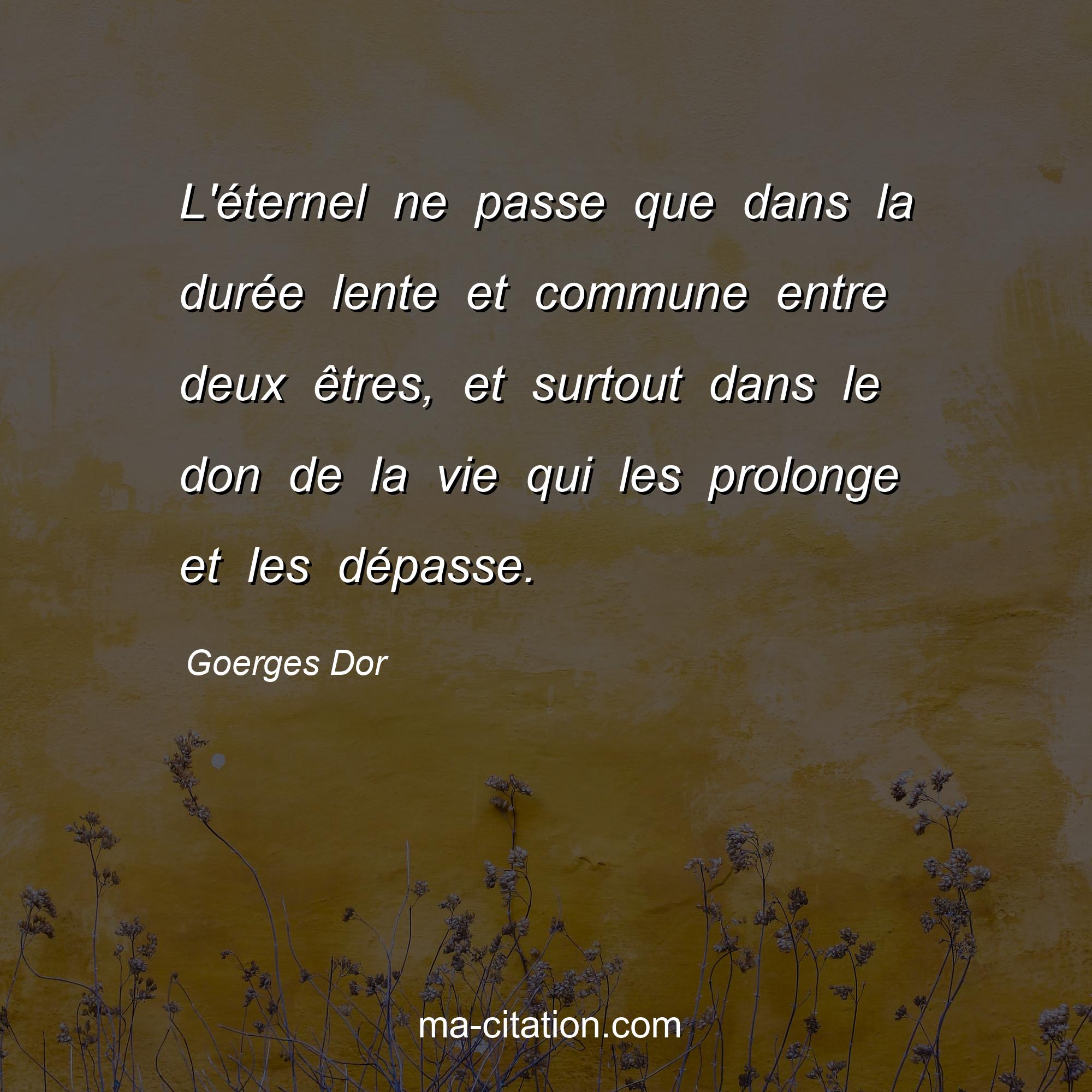 Goerges Dor est l'auteur de la citation sur la vie "L'éternel ne passe que dans la durée lente et commune entre deux êtres, et surtout dans le don de la vie qui les prolonge et les dépasse.".