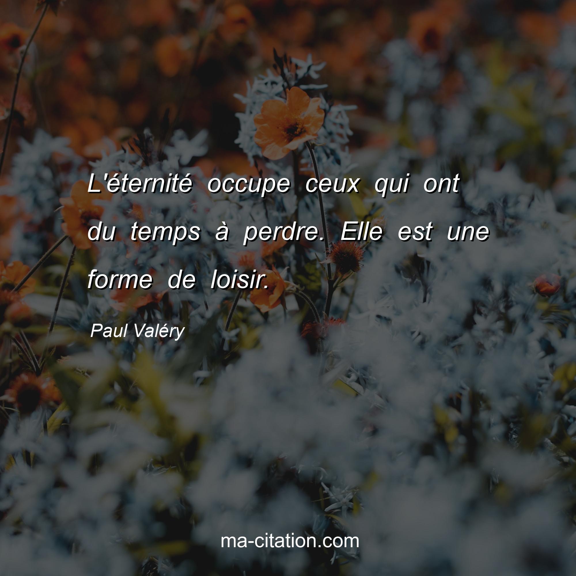 Citation sur la vie de Paul Valéry :L'éternité occupe ceux qui ont du temps à perdre. Elle est une forme de loisir.
