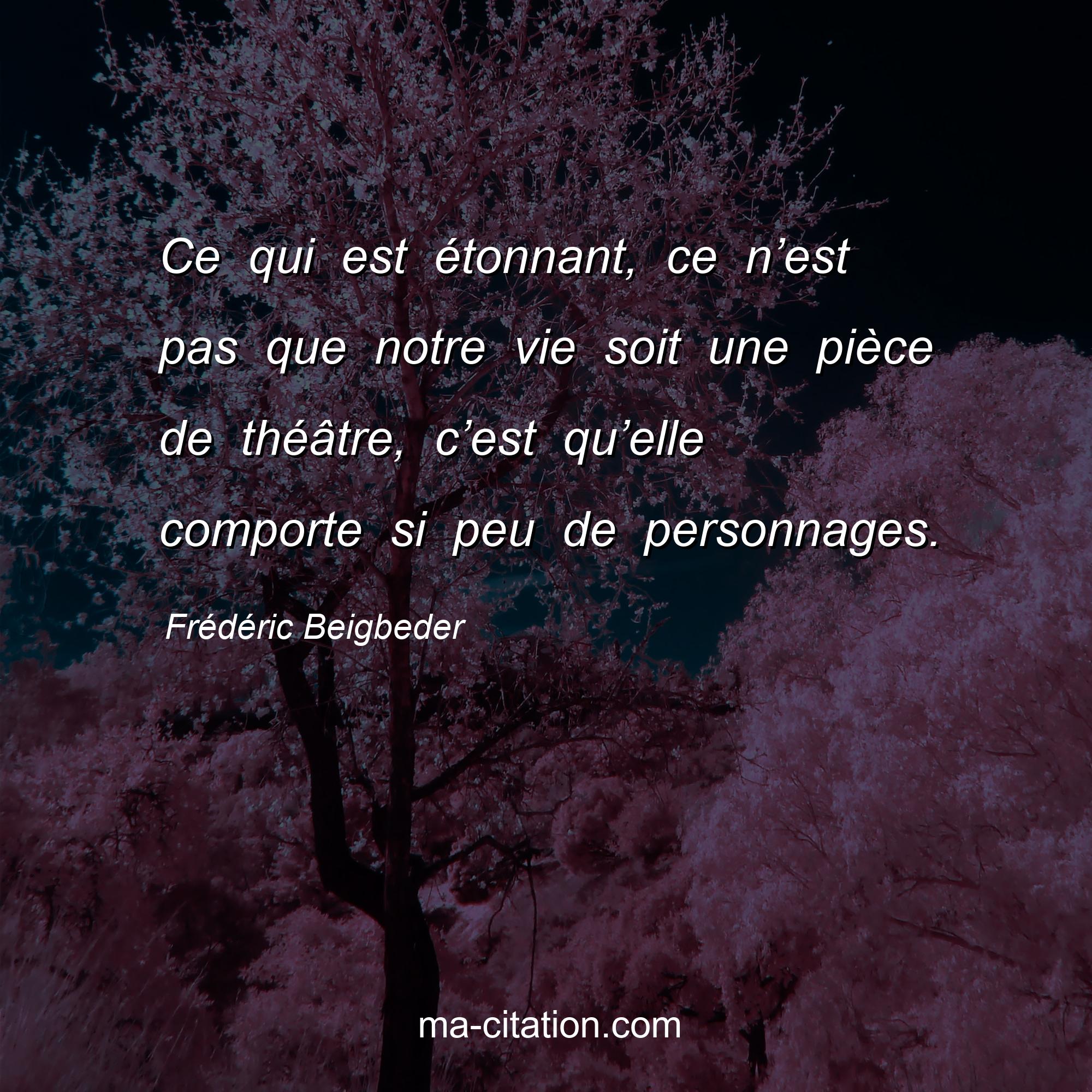 Citation sur la vie de Frédéric Beigbeder :Ce qui est étonnant, ce n’est pas que notre vie soit une pièce de théâtre, c’est qu’elle comporte si peu de personnages.