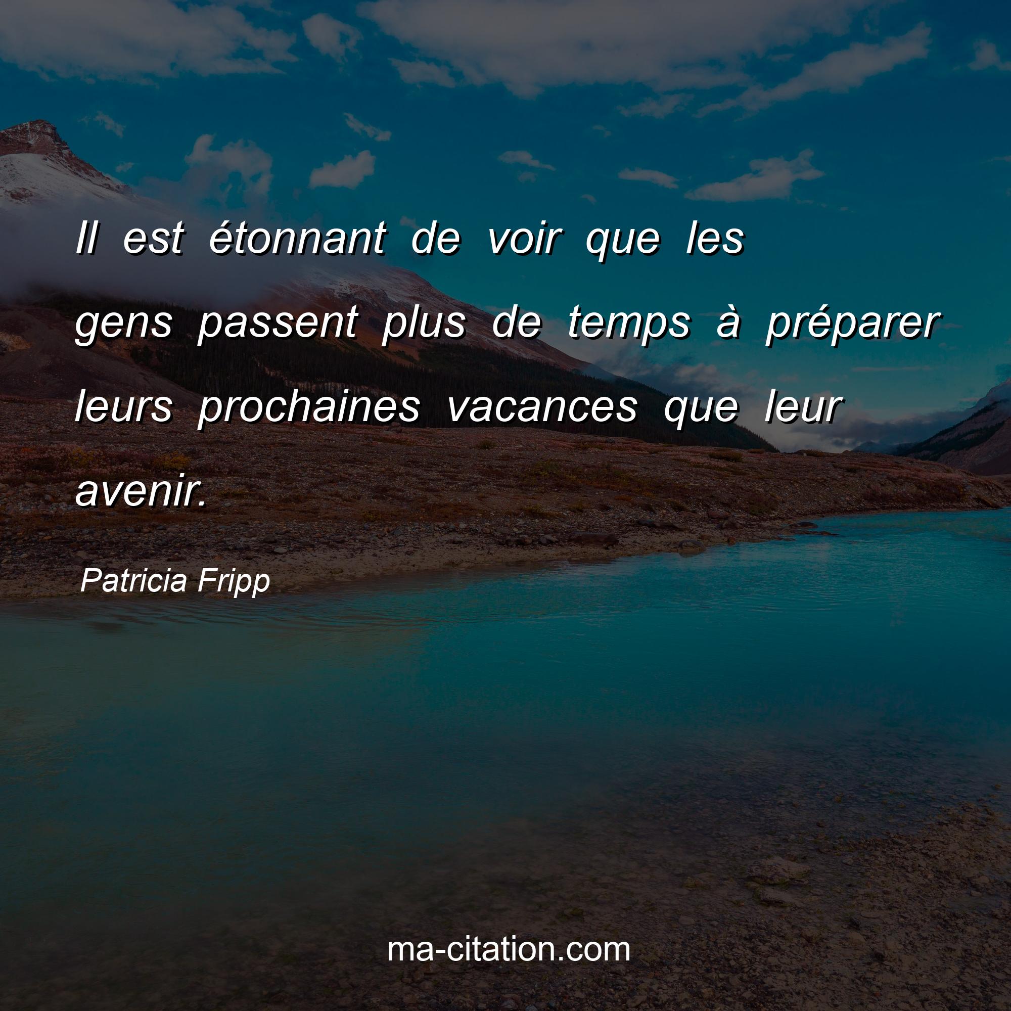 Citation sur la vie de Patricia Fripp :Il est étonnant de voir que les gens passent plus de temps à préparer leurs prochaines vacances que leur avenir.