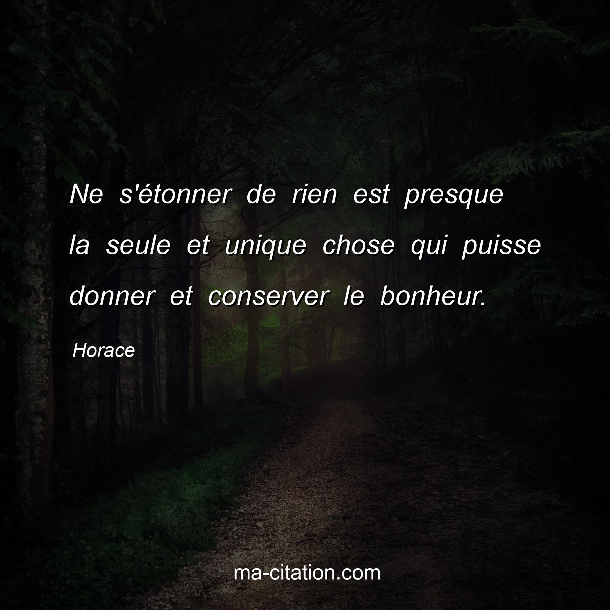Citation sur la vie de Horace :Ne s'étonner de rien est presque la seule et unique chose qui puisse donner et conserver le bonheur.