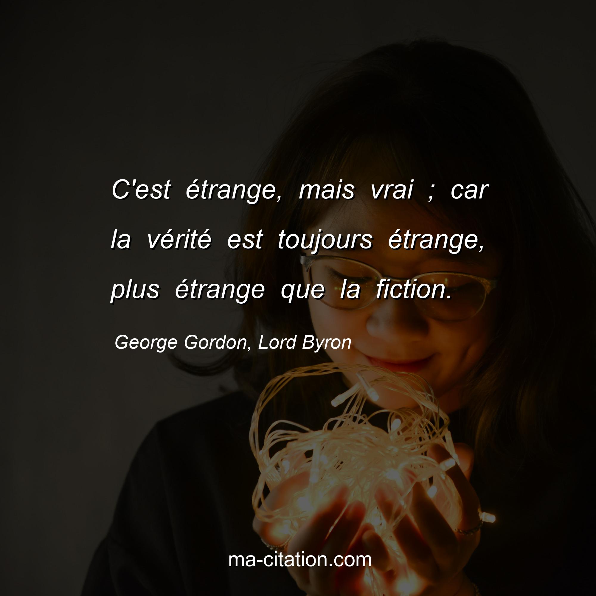 Citation sur la vie de George Gordon, Lord Byron :C'est étrange, mais vrai ; car la vérité est toujours étrange, plus étrange que la fiction.