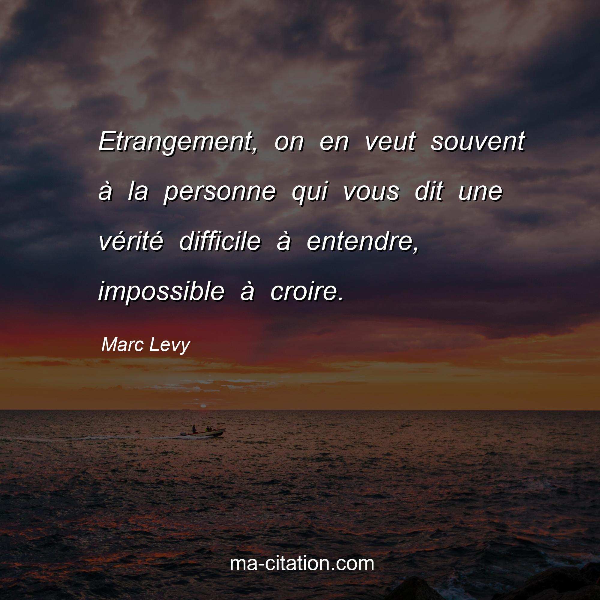 Marc Levy est l'auteur de la citation sur la vie "Etrangement, on en veut souvent à la personne qui vous dit une vérité difficile à entendre, impossible à croire.".