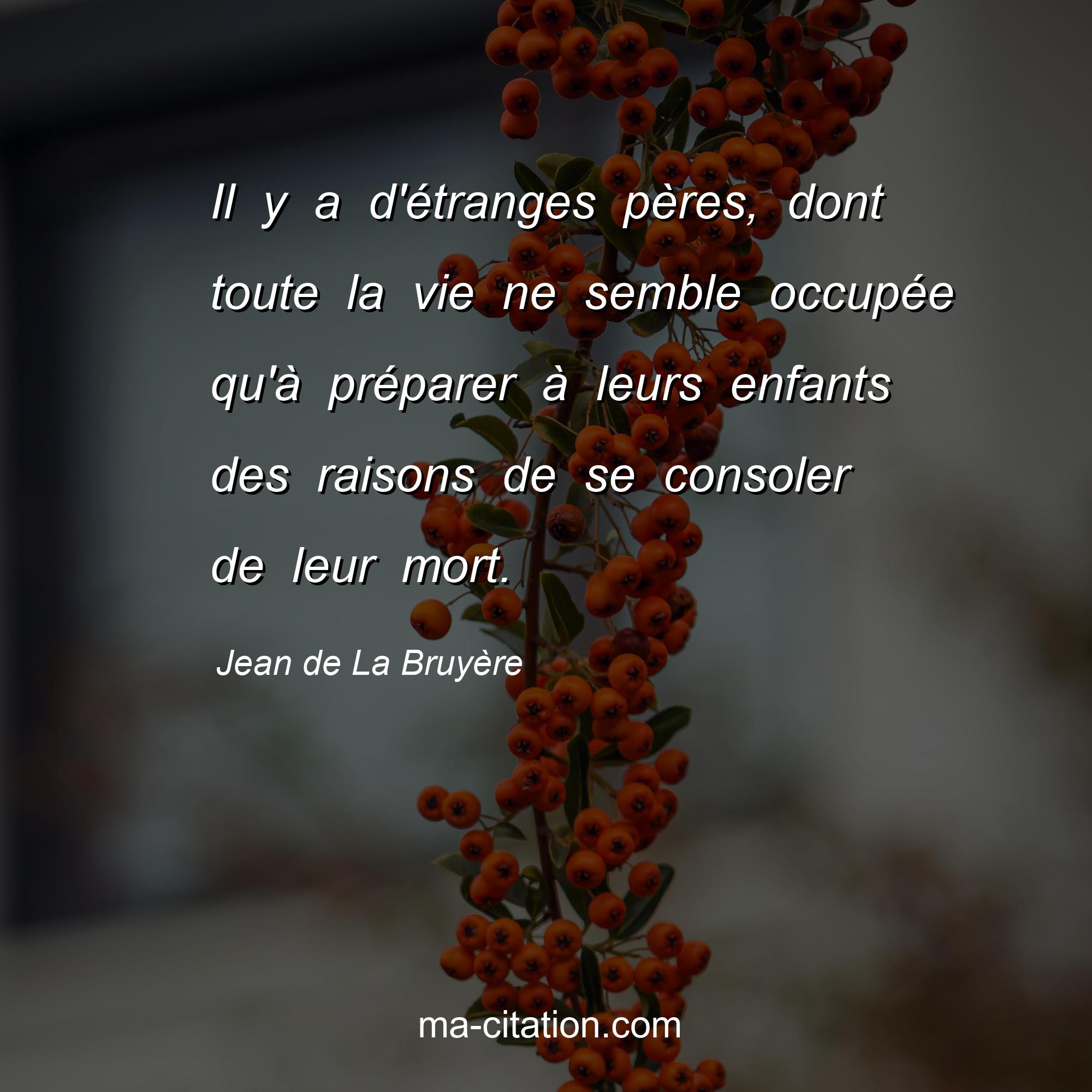 Citation sur la vie de Jean de La Bruyère :Il y a d'étranges pères, dont toute la vie ne semble occupée qu'à préparer à leurs enfants des raisons de se consoler de leur mort.