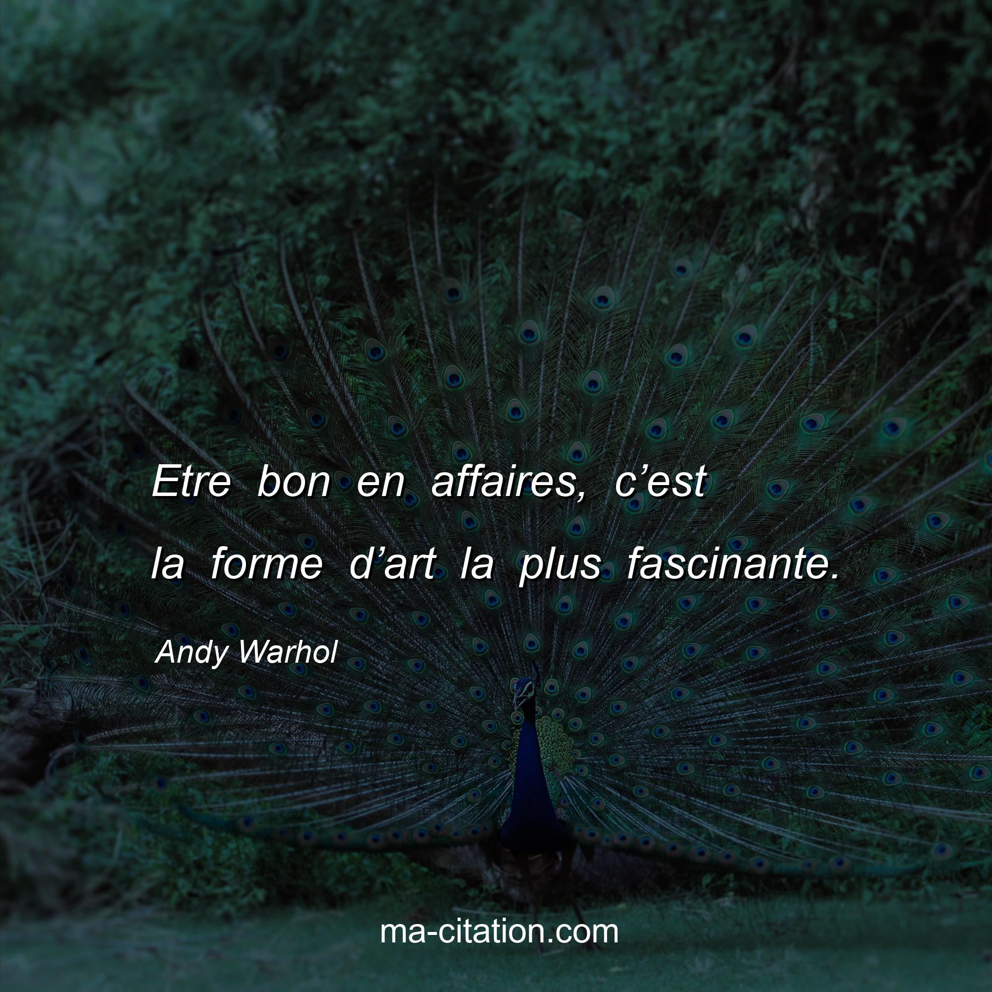 Citation sur la vie d'Andy Warhol :Etre bon en affaires, c’est la forme d’art la plus fascinante.