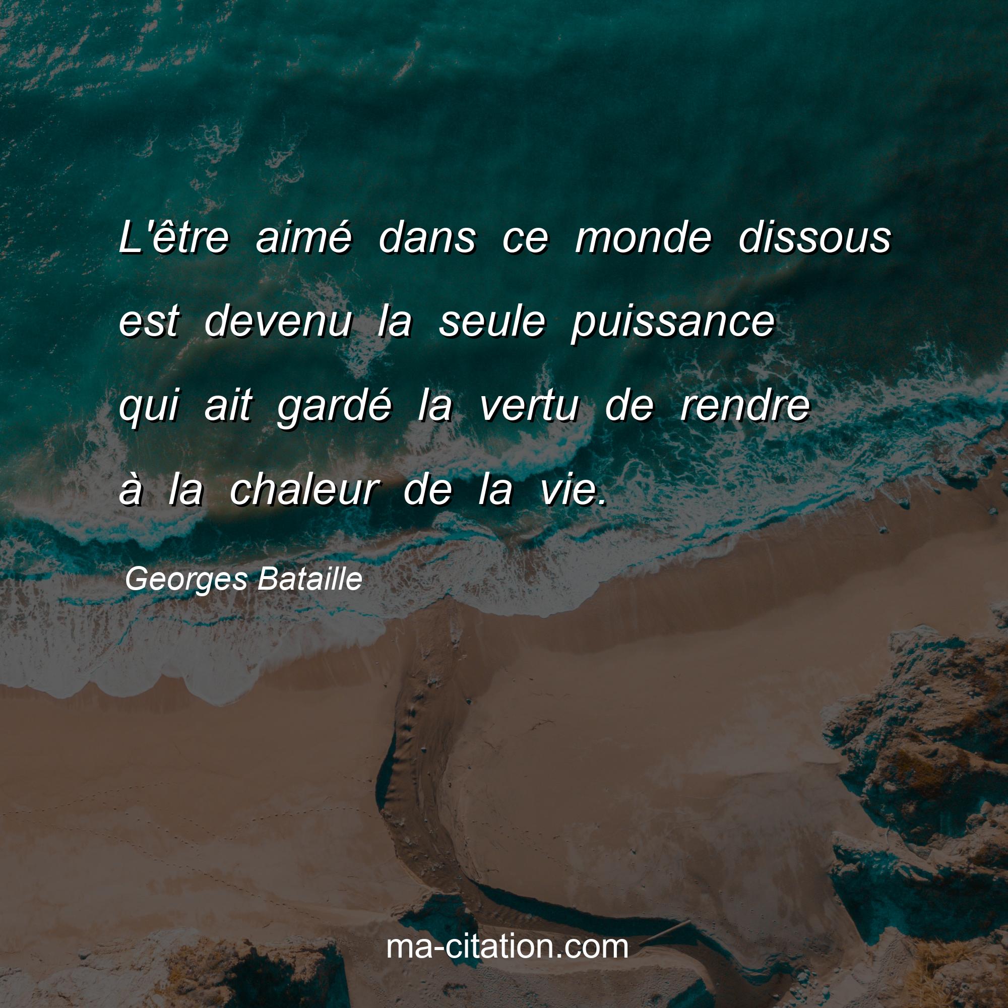 Georges Bataille est l'auteur de la citation sur la vie "L'être aimé dans ce monde dissous est devenu la seule puissance qui ait gardé la vertu de rendre à la chaleur de la vie.".