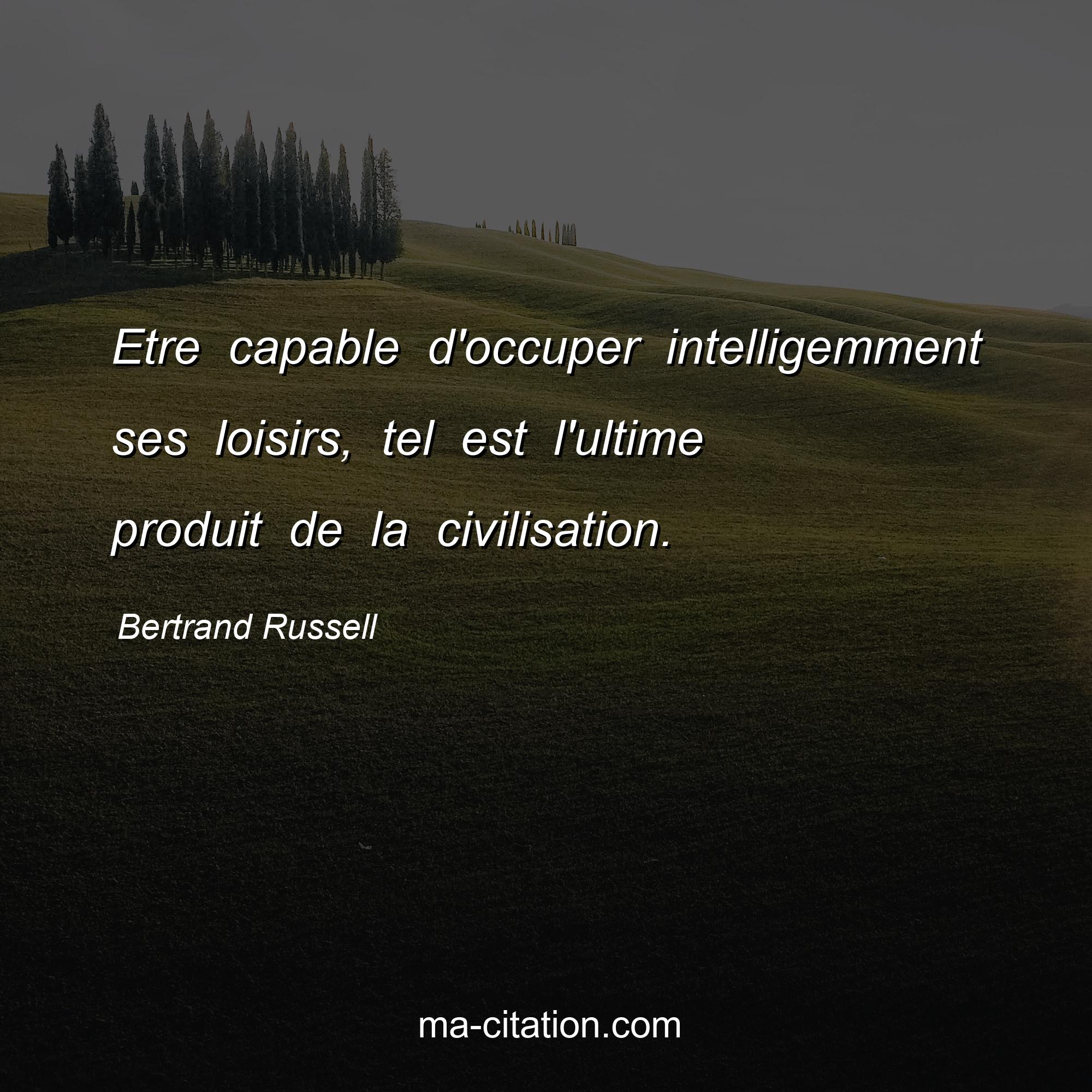 Citation sur la vie de Bertrand Russell :Etre capable d'occuper intelligemment ses loisirs, tel est l'ultime produit de la civilisation.