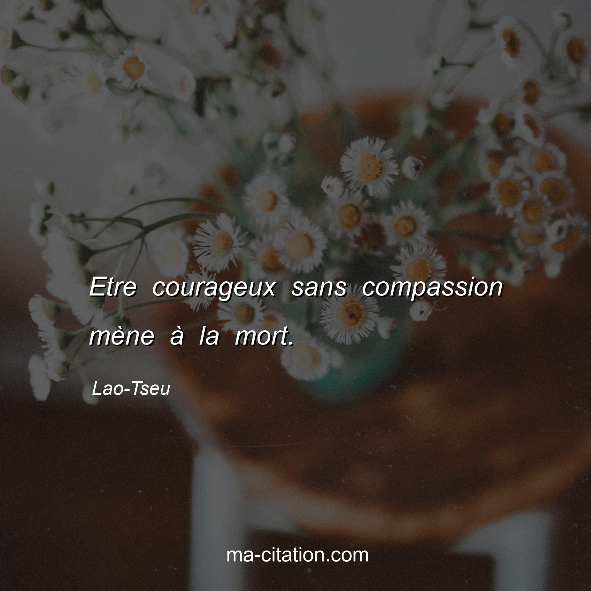 Citation sur la vie de Lao-Tseu :Etre courageux sans compassion mène à la mort.