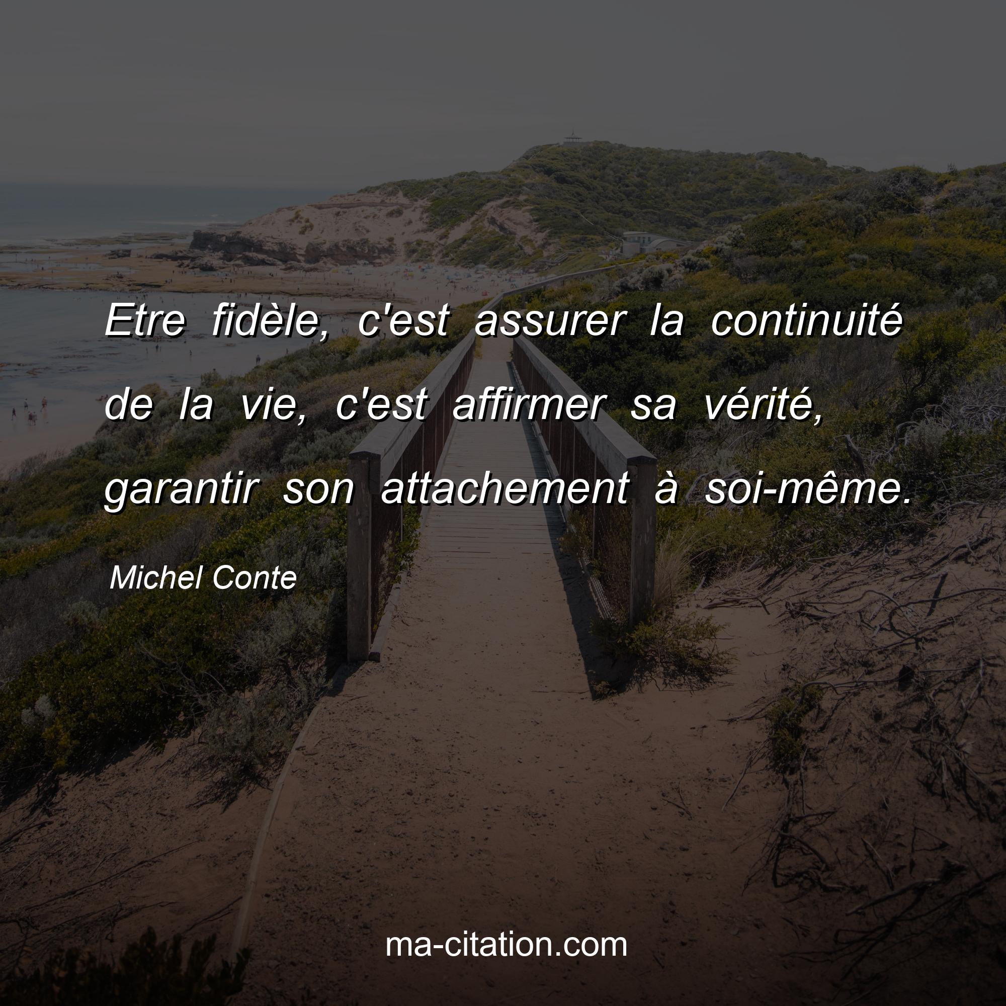 Michel Conte est l'auteur de la citation sur la vie "Etre fidèle, c'est assurer la continuité de la vie, c'est affirmer sa vérité, garantir son attachement à soi-même.".