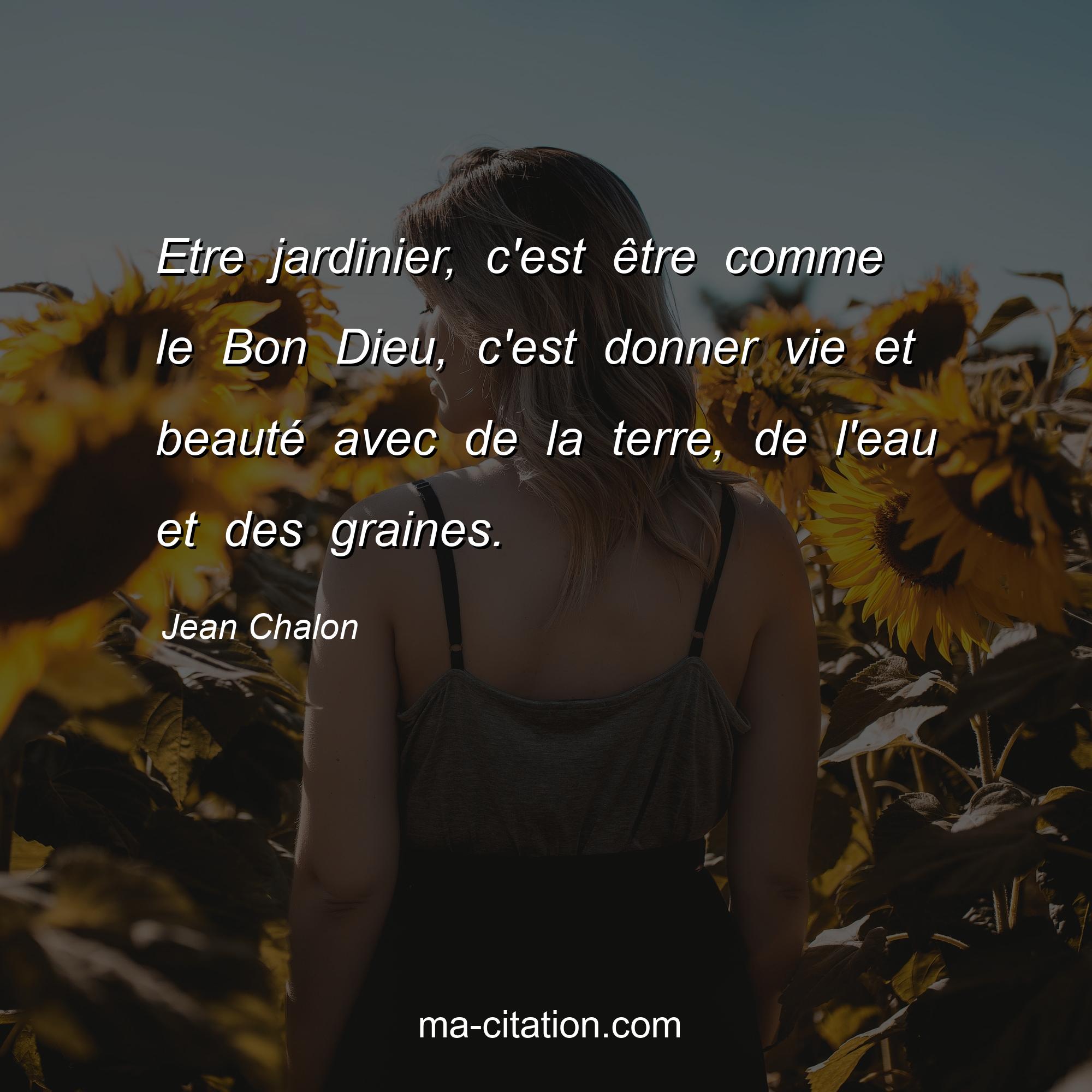 Jean Chalon est l'auteur de la citation sur la vie "Etre jardinier, c'est être comme le Bon Dieu, c'est donner vie et beauté avec de la terre, de l'eau et des graines.".