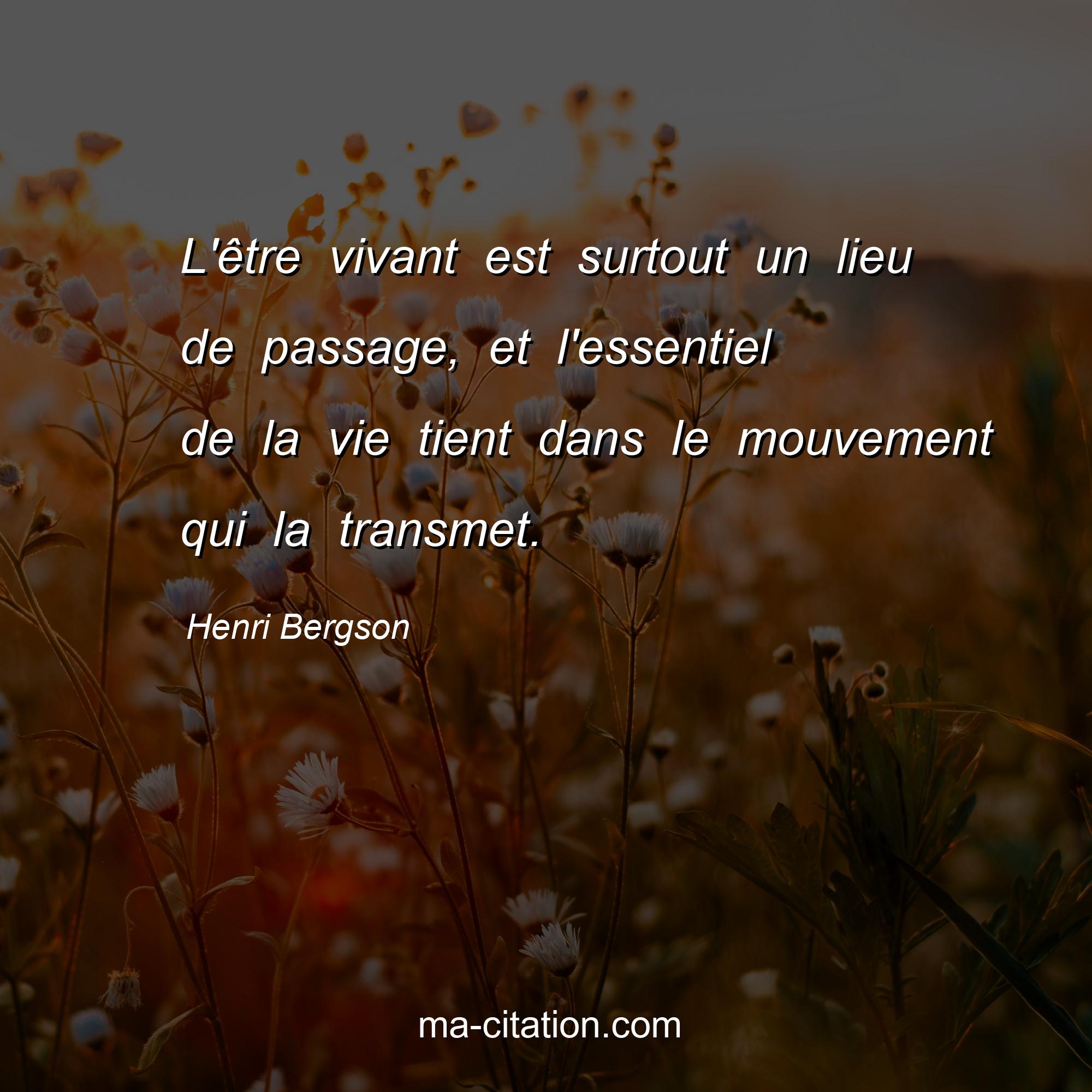Citation sur la vie de Henri Bergson :L'être vivant est surtout un lieu de passage, et l'essentiel de la vie tient dans le mouvement qui la transmet.