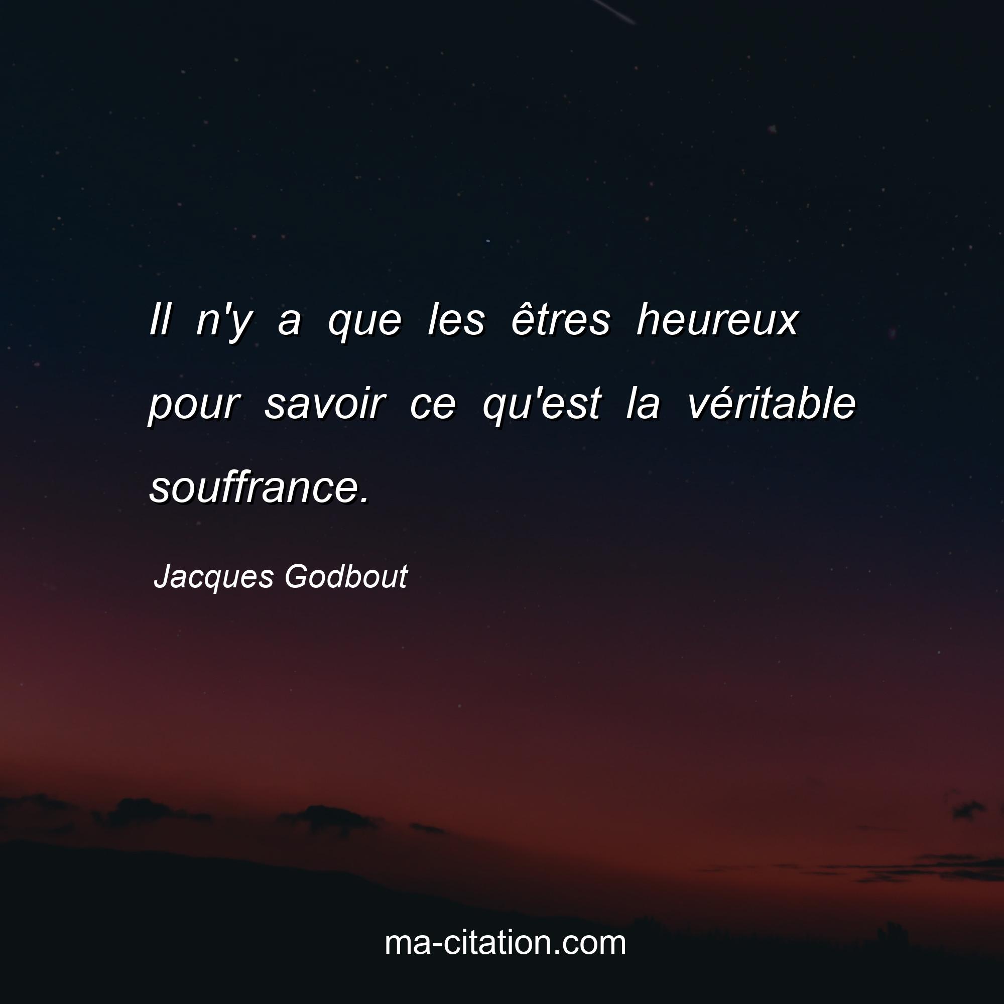 Jacques Godbout est l'auteur de la citation sur la vie "Il n'y a que les êtres heureux pour savoir ce qu'est la véritable souffrance.".