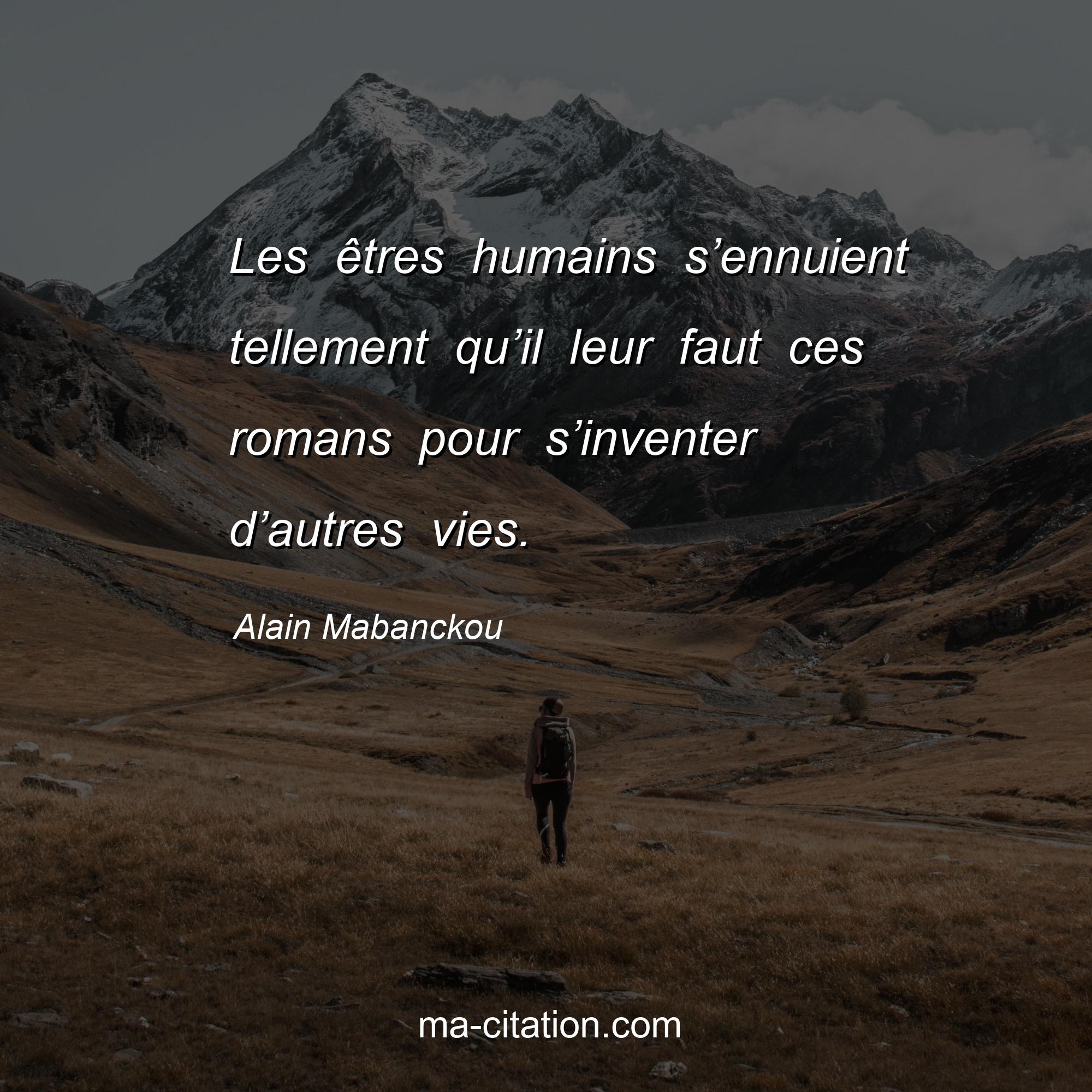Citation sur la vie d'Alain Mabanckou :Les êtres humains s’ennuient tellement qu’il leur faut ces romans pour s’inventer d’autres vies.