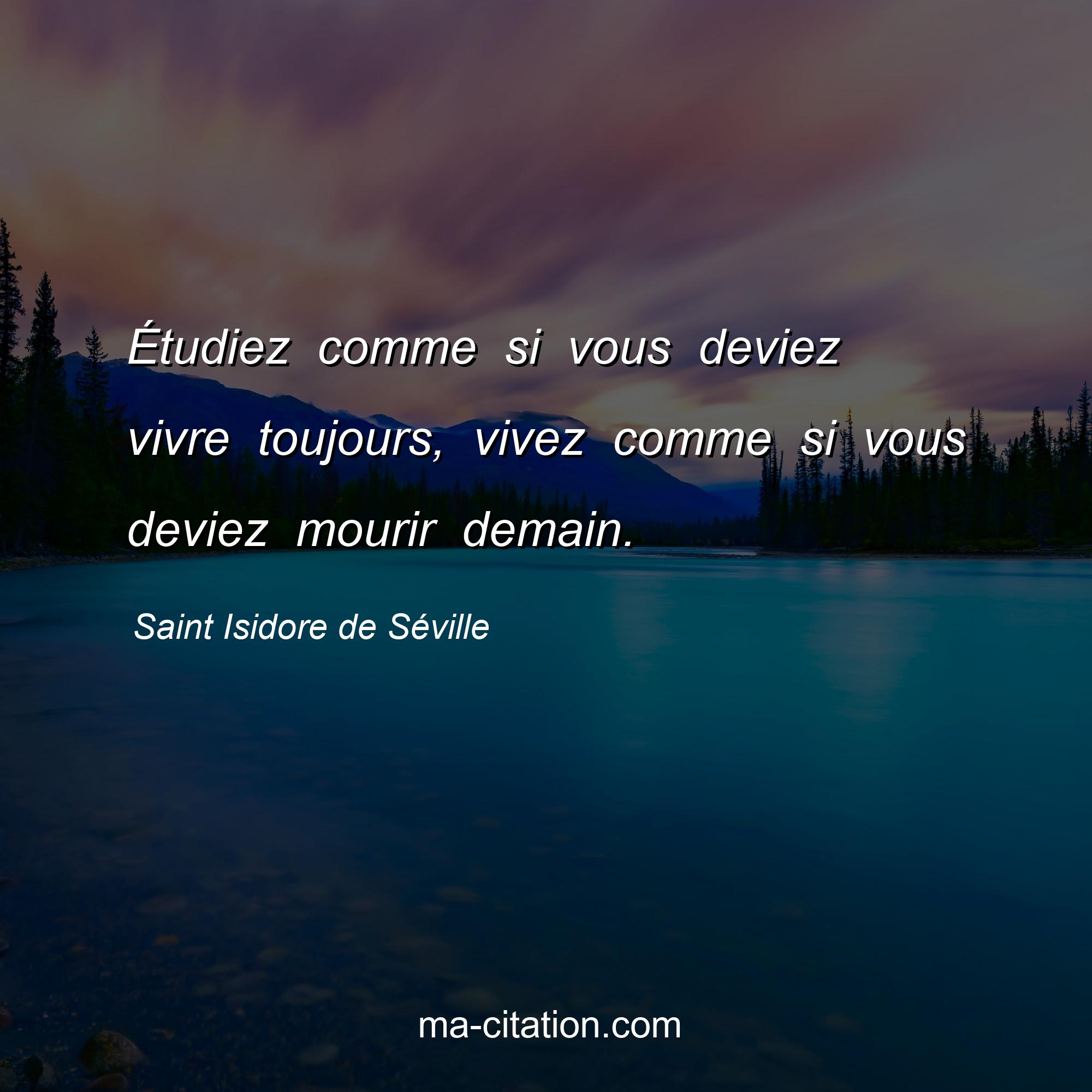 Citation sur la vie de Saint Isidore de Séville :Étudiez comme si vous deviez vivre toujours, vivez comme si vous deviez mourir demain.