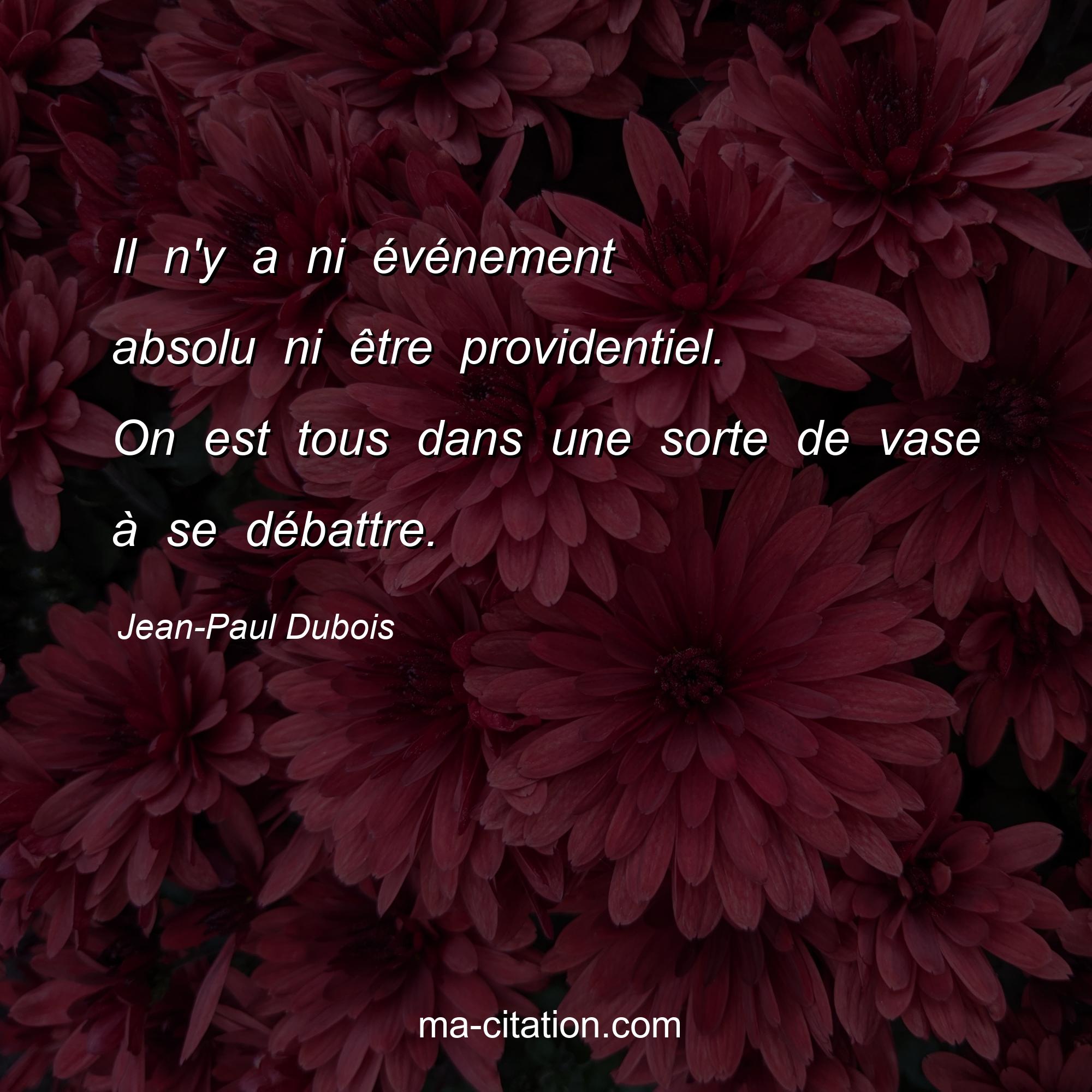 Citation sur la vie de Jean-Paul Dubois :Il n'y a ni événement absolu ni être providentiel. On est tous dans une sorte de vase à se débattre.