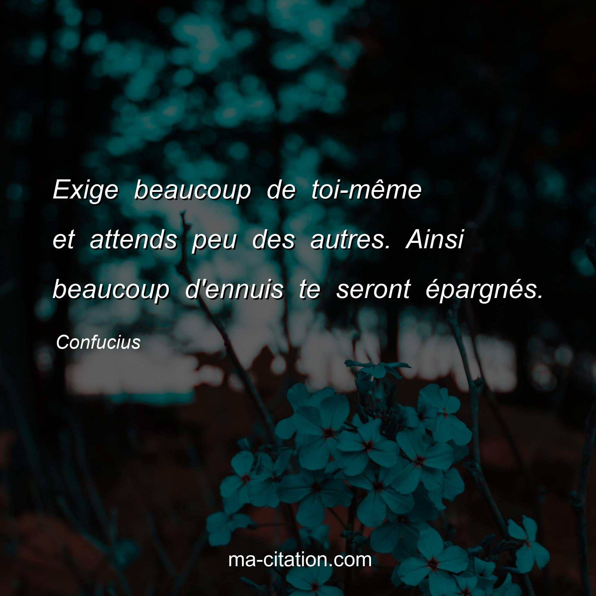 Exige beaucoup de toi-même et attends peu des autres. Ainsi beaucoup d'ennuis te seront épargnés.
