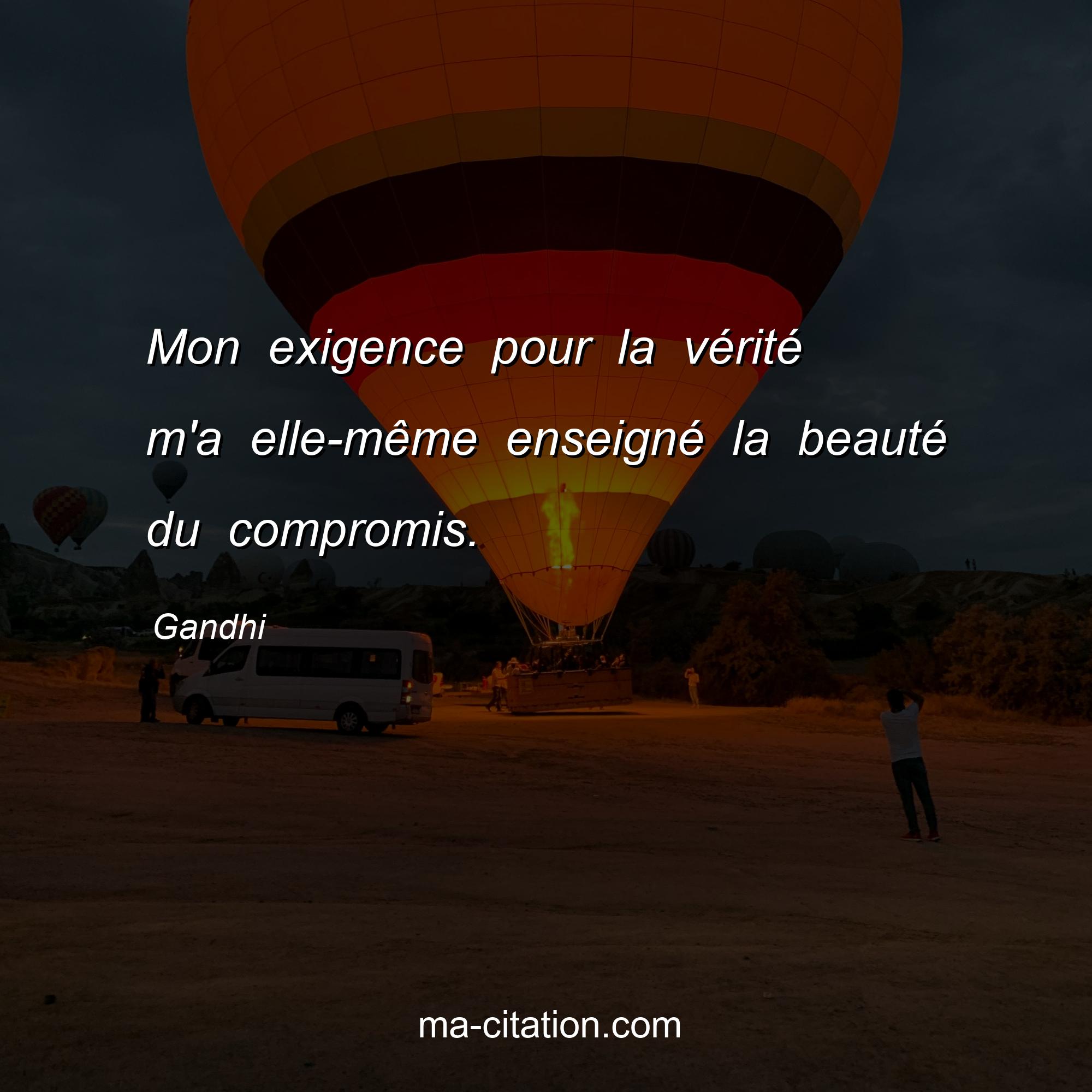 Gandhi est l'auteur de la citation sur la vie "Mon exigence pour la vérité m'a elle-même enseigné la beauté du compromis.".
