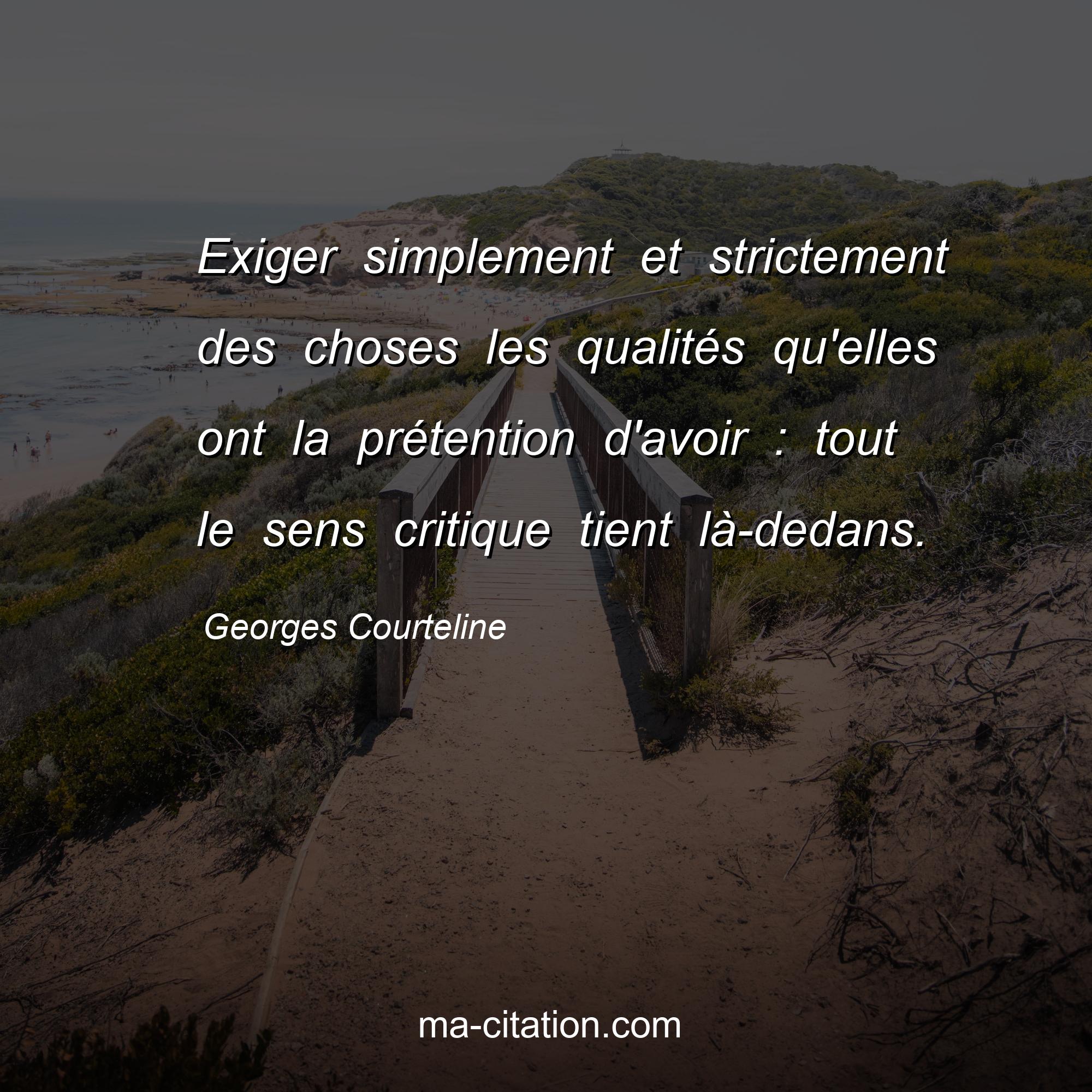 Citation sur la vie de Georges Courteline :Exiger simplement et strictement des choses les qualités qu'elles ont la prétention d'avoir : tout le sens critique tient là -dedans.