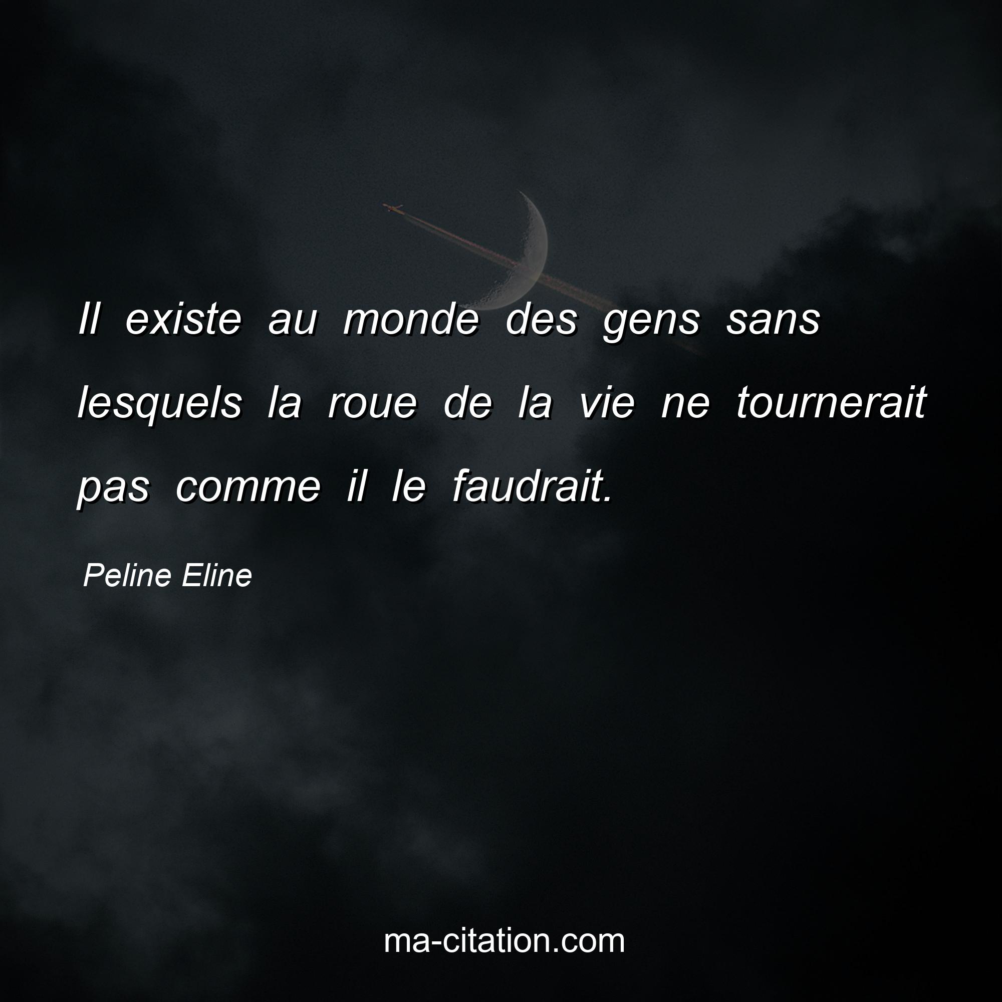 Citation sur la vie de Peline Eline :Il existe au monde des gens sans lesquels la roue de la vie ne tournerait pas comme il le faudrait.