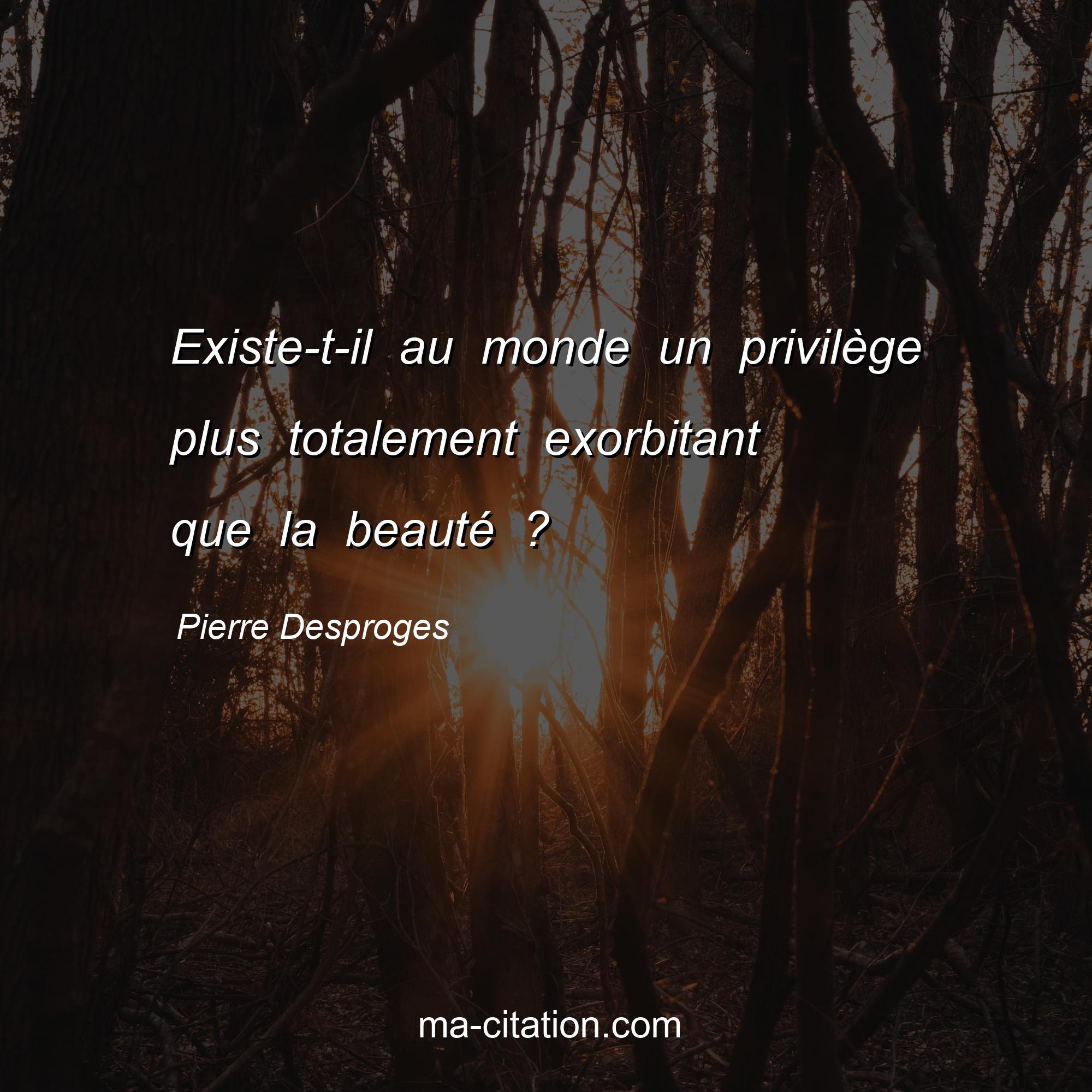 Citation sur la vie de Pierre Desproges :Existe-t-il au monde un privilège plus totalement exorbitant que la beauté ?