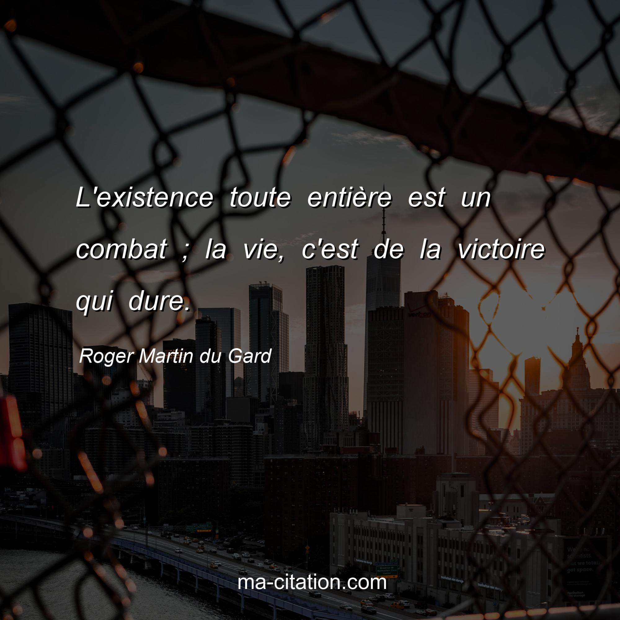 Citation sur la vie de Roger Martin du Gard :L'existence toute entière est un combat ; la vie, c'est de la victoire qui dure.