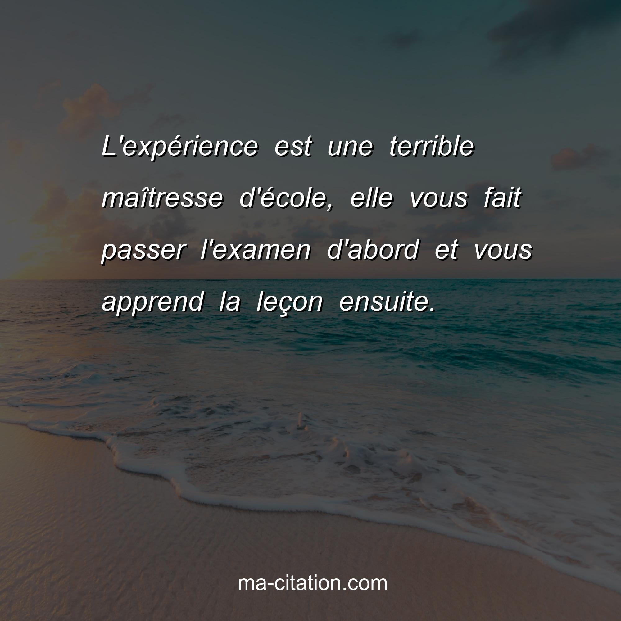 Citation sur la vie :L'expérience est une terrible maîtresse d'école, elle vous fait passer l'examen d'abord et vous apprend la leçon ensuite.