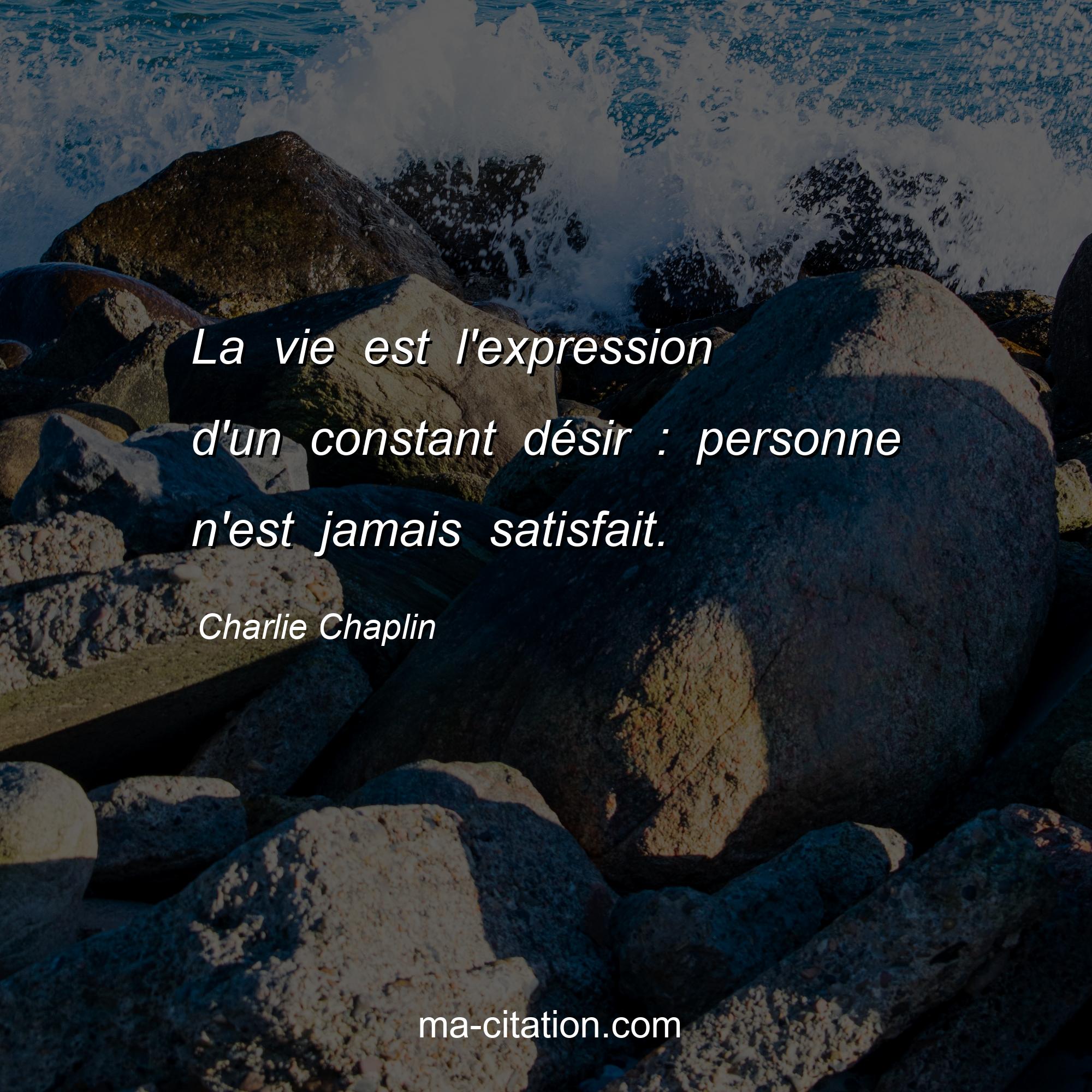 Citation sur la vie de Charlie Chaplin :La vie est l'expression d'un constant désir : personne n'est jamais satisfait.
