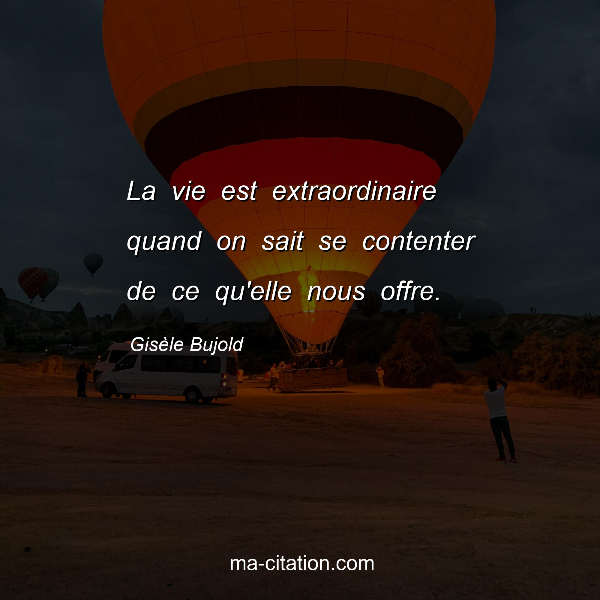 Gisèle Bujold est l'auteur de la citation sur la vie "La vie est extraordinaire quand on sait se contenter de ce qu'elle nous offre.".