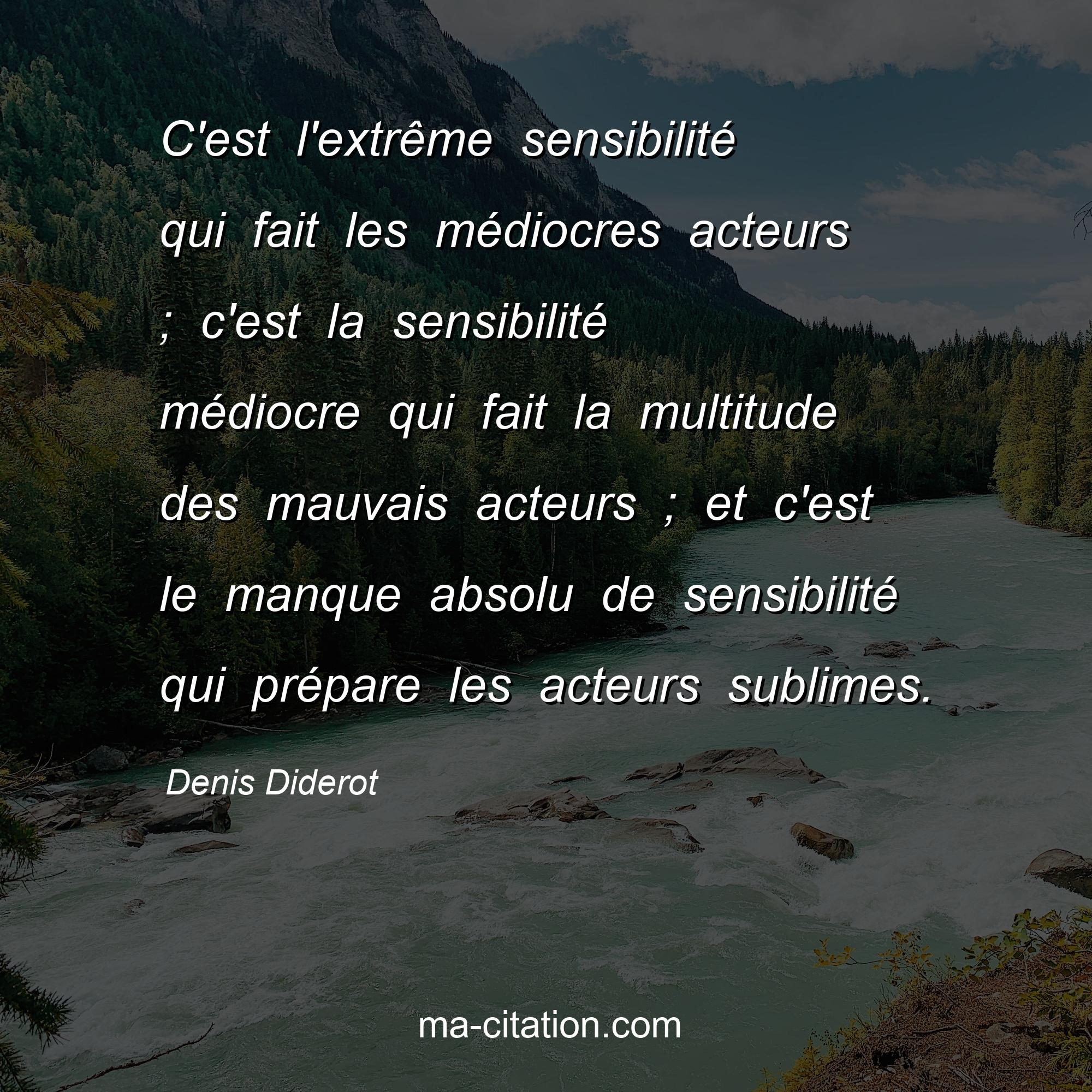 Citation sur la vie de Denis Diderot :C'est l'extrême sensibilité qui fait les médiocres acteurs ; c'est la sensibilité médiocre qui fait la multitude des mauvais acteurs ; et c'est le manque absolu de sensibilité qui prépare les acteurs sublimes.