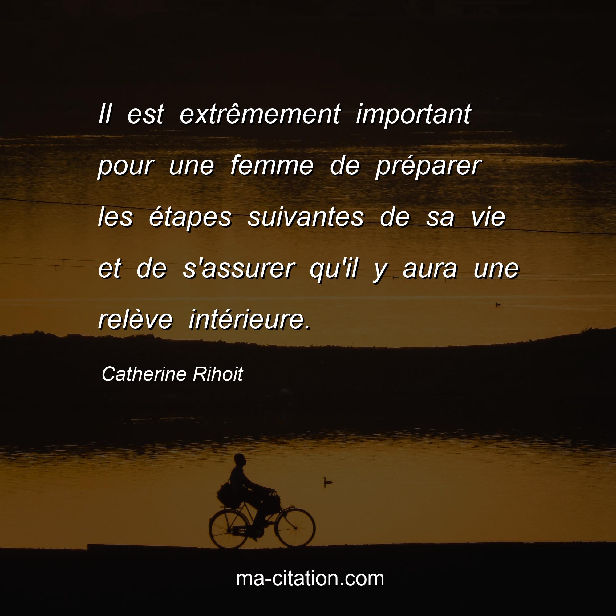 Citation sur la vie de Catherine Rihoit :Il est extrêmement important pour une femme de préparer les étapes suivantes de sa vie et de s'assurer qu'il y aura une relève intérieure.