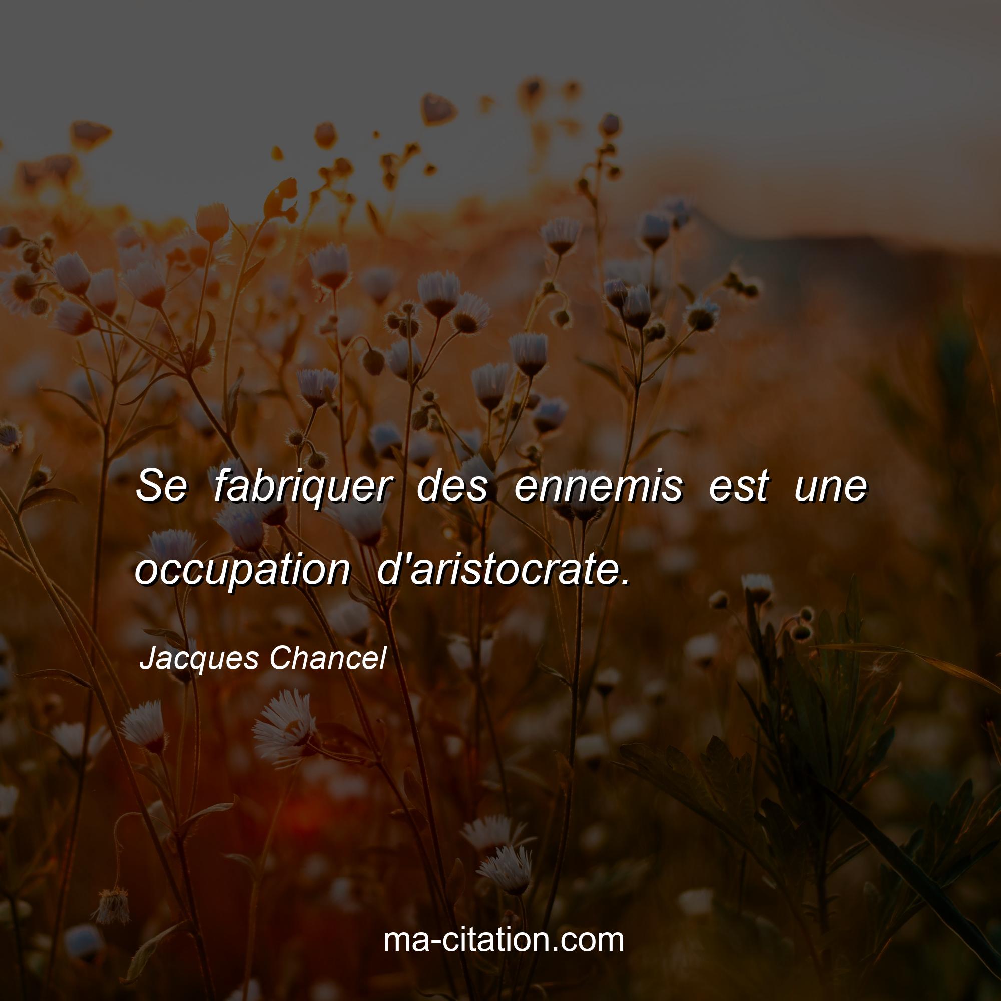 Citation sur la vie de Jacques Chancel :Se fabriquer des ennemis est une occupation d'aristocrate.