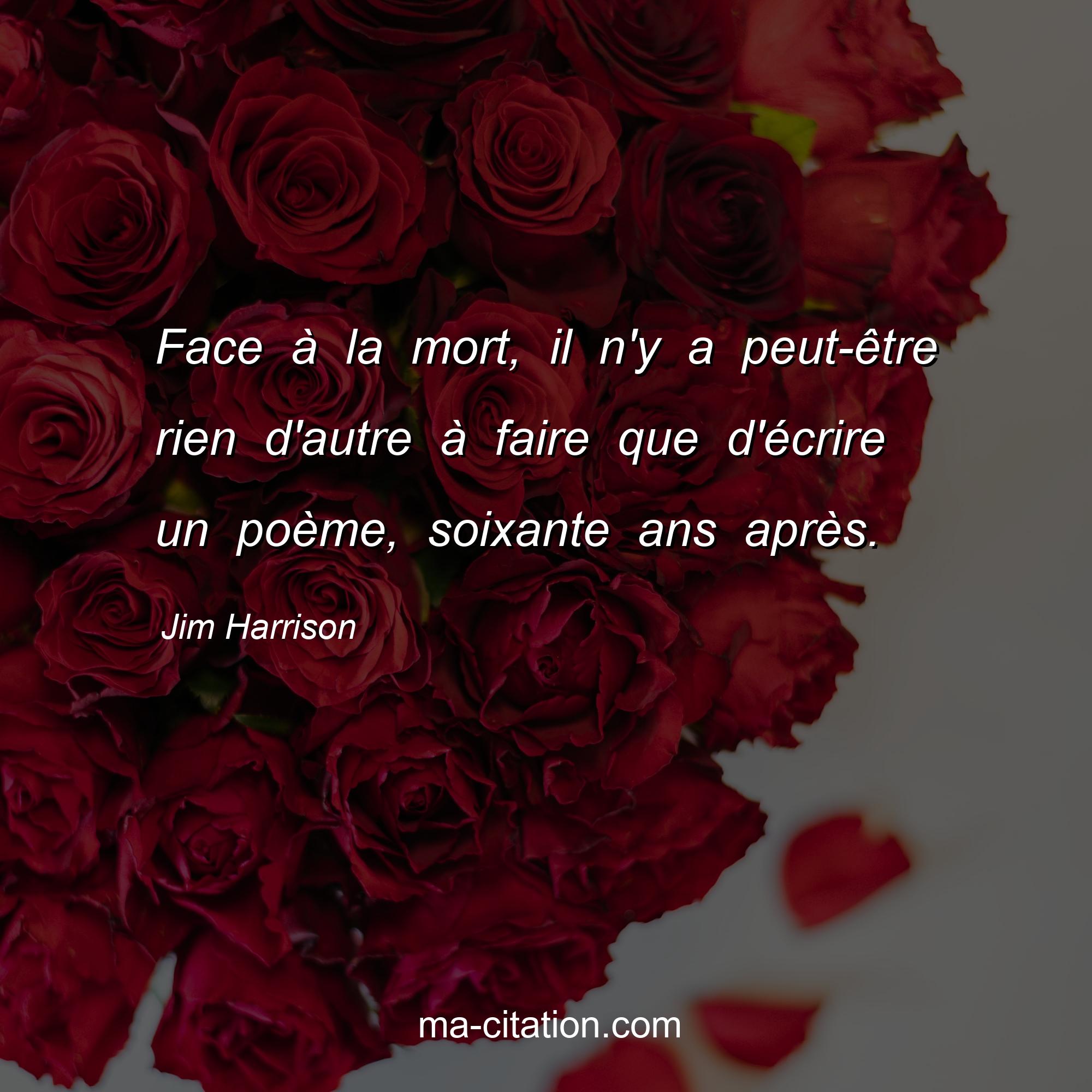 Citation sur la vie de Jim Harrison :Face à la mort, il n'y a peut-être rien d'autre à faire que d'écrire un poème, soixante ans après.
