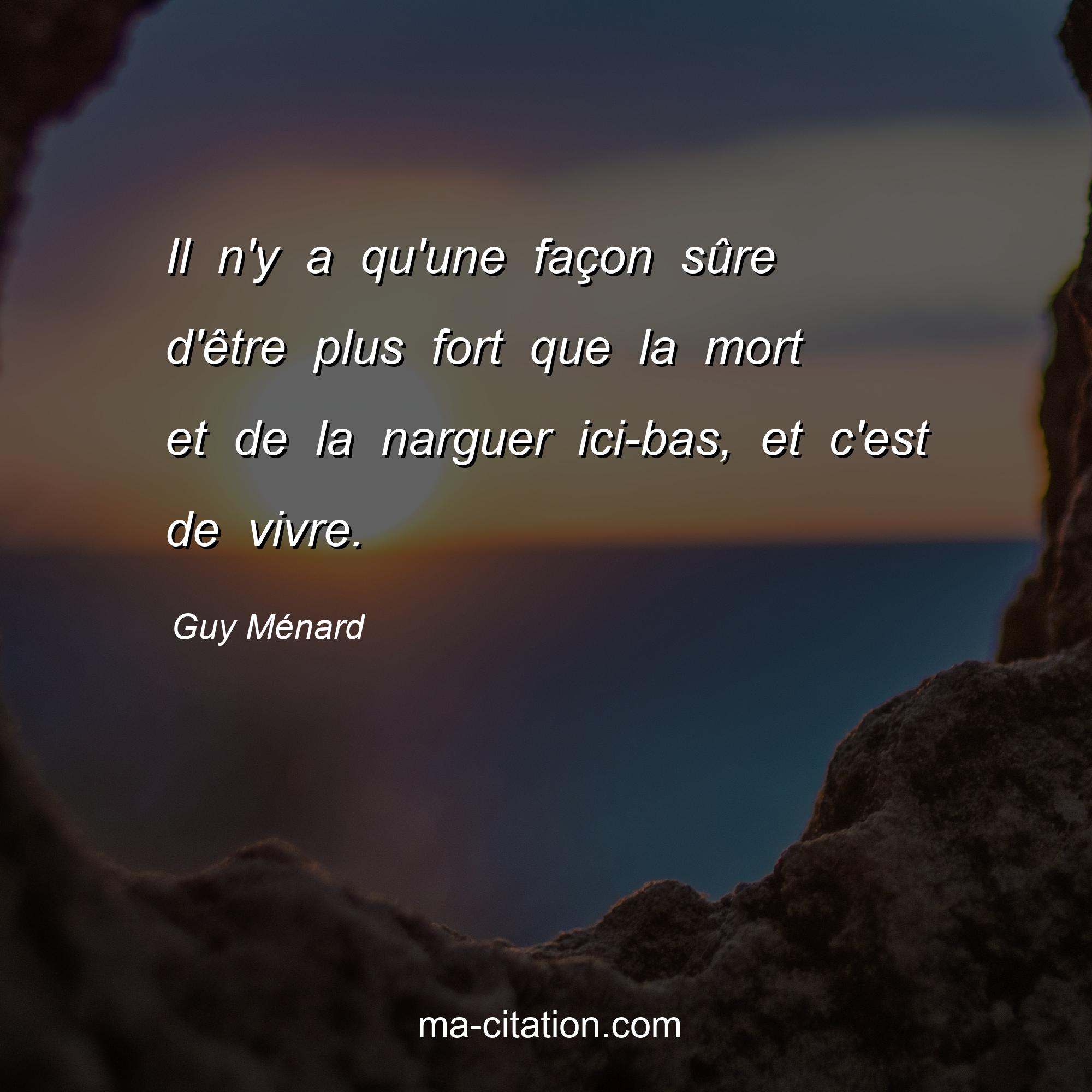 Guy Ménard est l'auteur de la citation sur la vie "Il n'y a qu'une façon sûre d'être plus fort que la mort et de la narguer ici-bas, et c'est de vivre.".