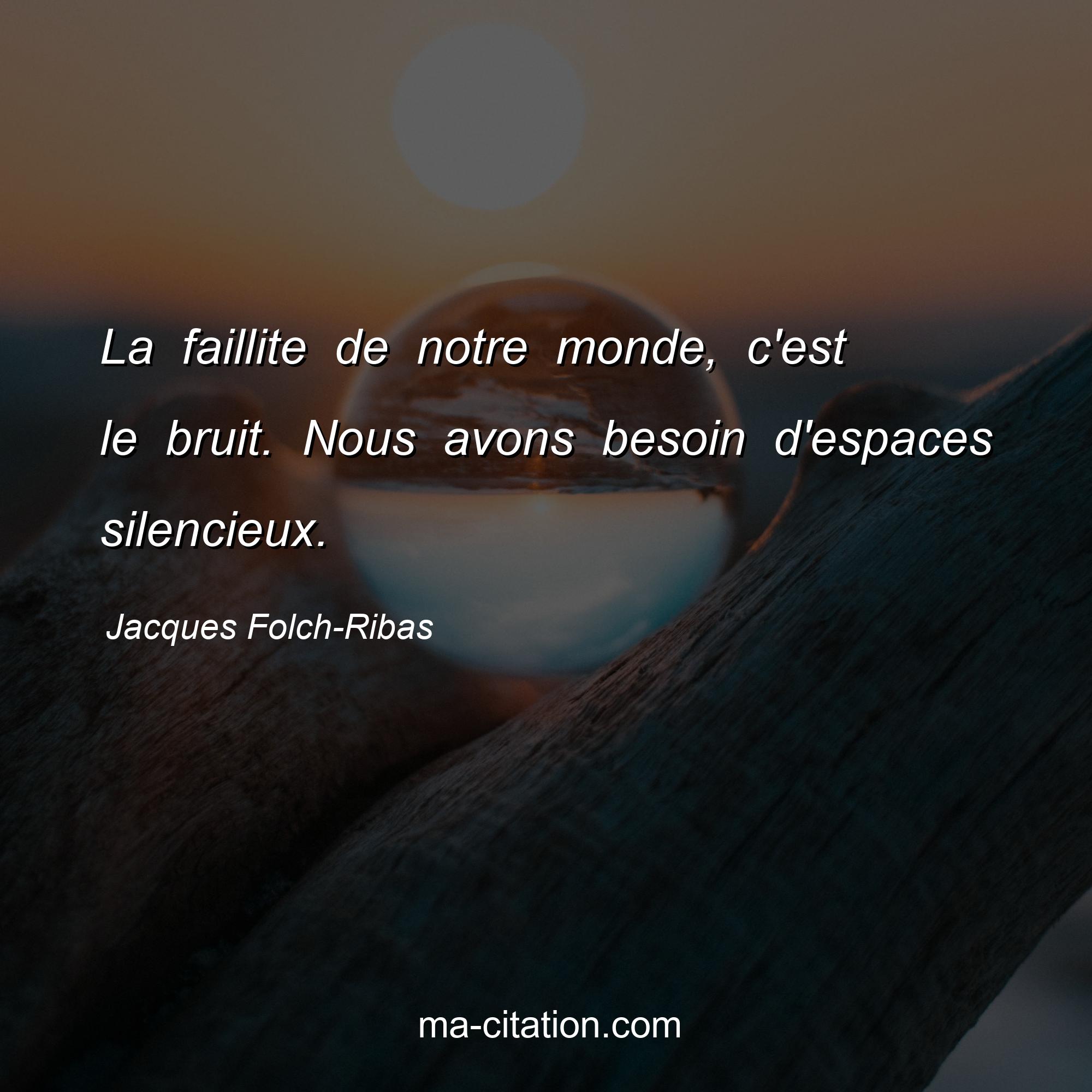 Citation sur la vie de Jacques Folch-Ribas :La faillite de notre monde, c'est le bruit. Nous avons besoin d'espaces silencieux.