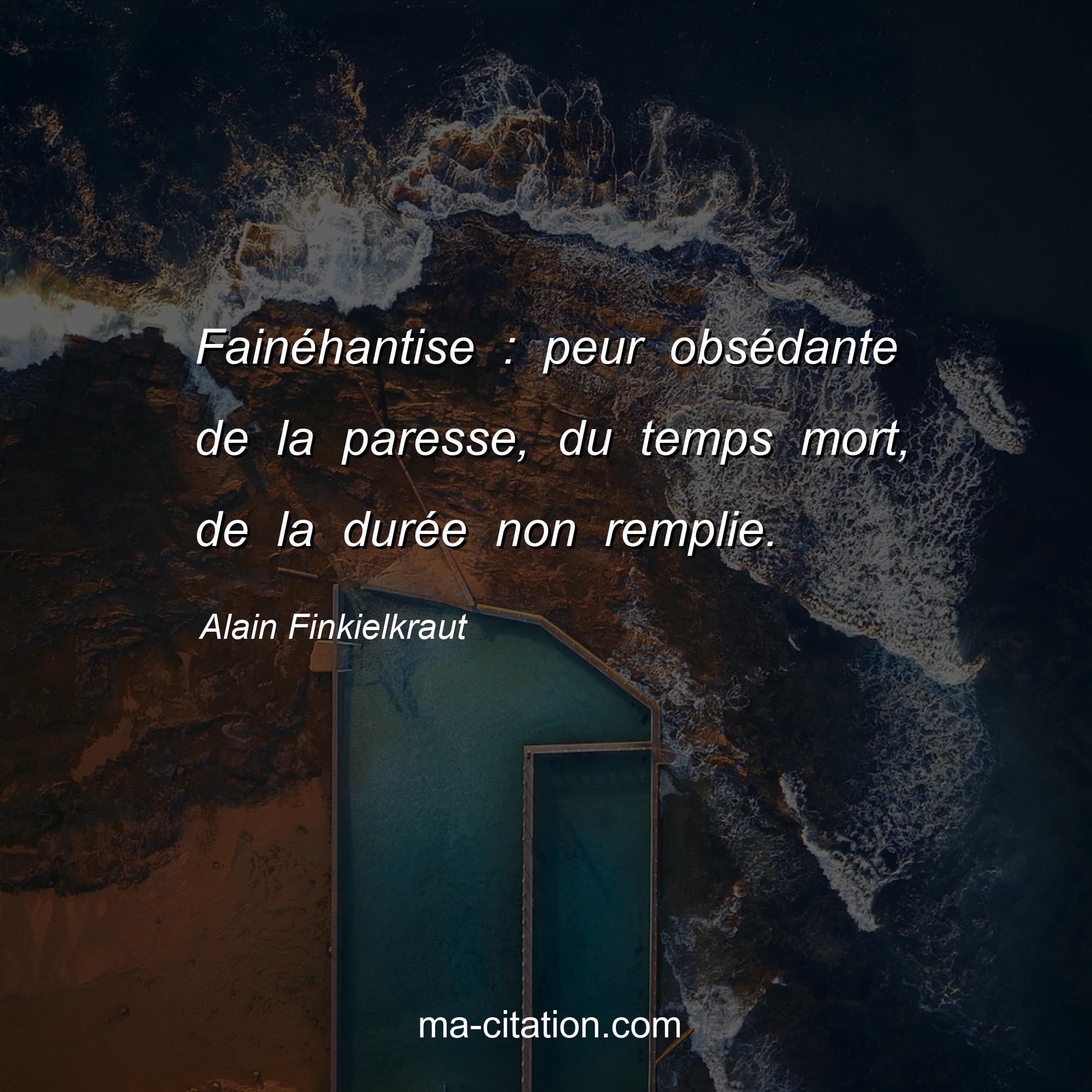 Citation sur la vie d'Alain Finkielkraut :Fainéhantise : peur obsédante de la paresse, du temps mort, de la durée non remplie.