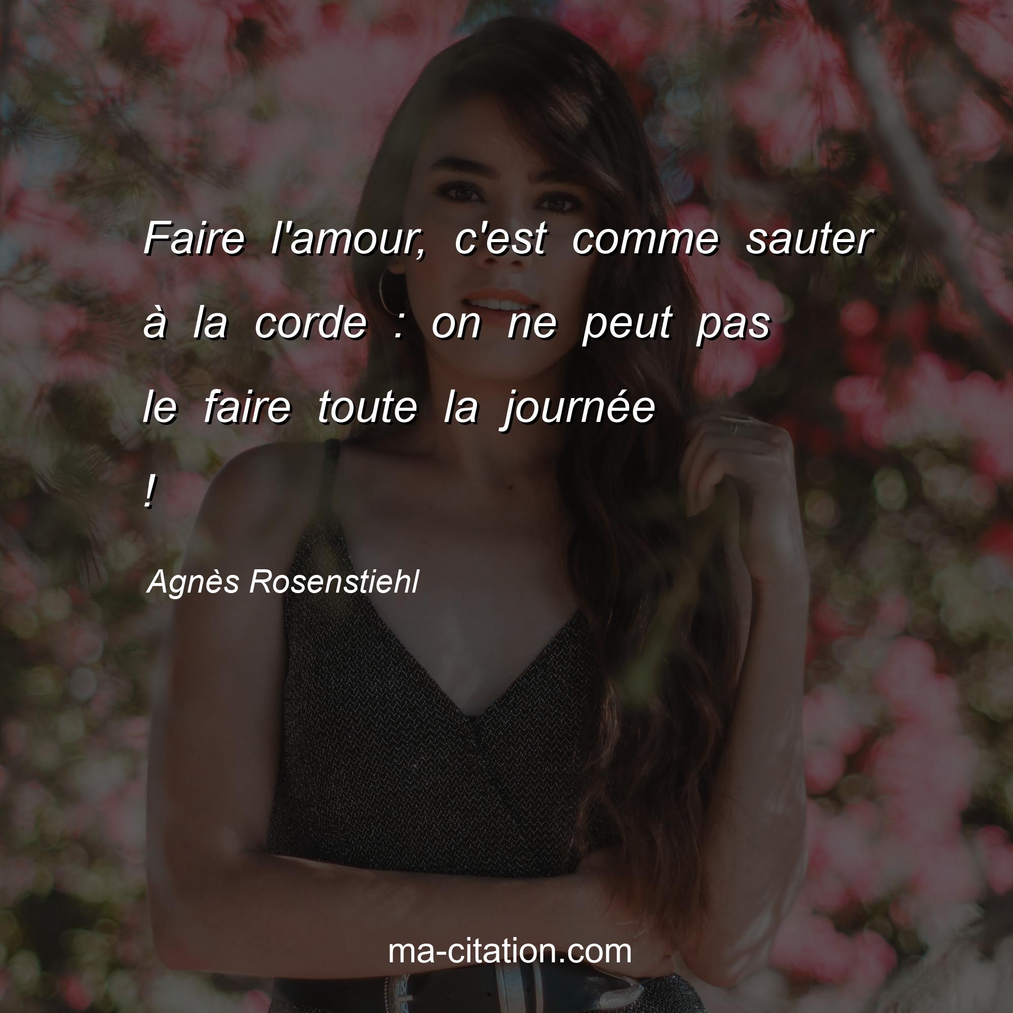 Citation sur la vie d'Agnès Rosenstiehl :Faire l'amour, c'est comme sauter à la corde : on ne peut pas le faire toute la journée !