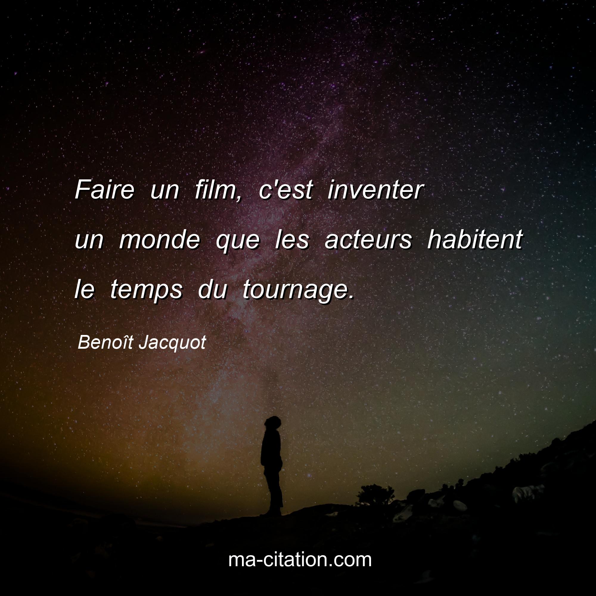 Citation sur la vie de Benoît Jacquot :Faire un film, c'est inventer un monde que les acteurs habitent le temps du tournage.