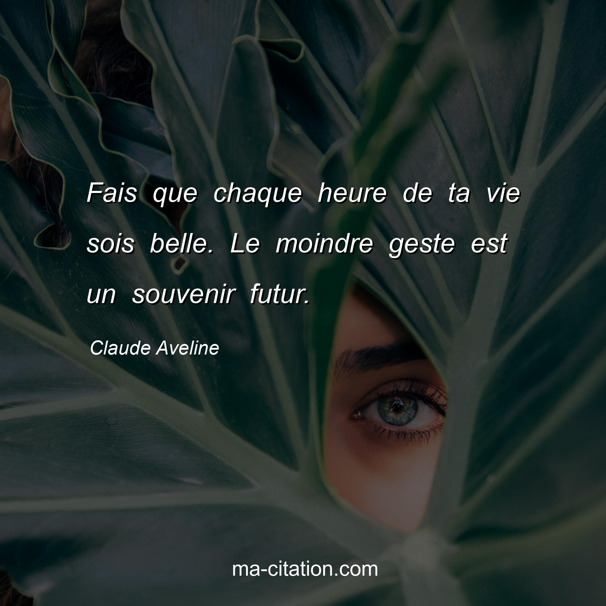 Citation sur la vie de Claude Aveline :Fais que chaque heure de ta vie sois belle. Le moindre geste est un souvenir futur.