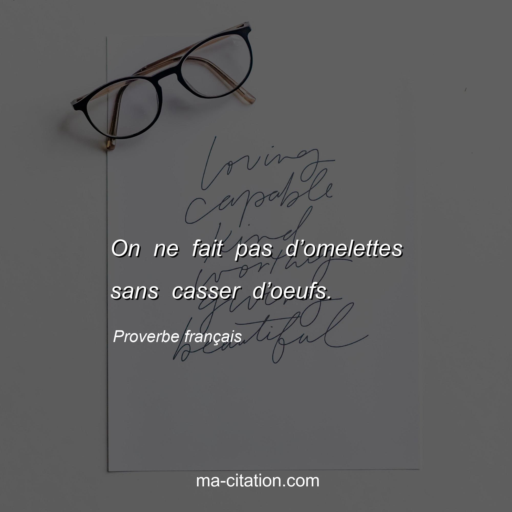 Proverbe français sur la vie :On ne fait pas d’omelettes sans casser d’oeufs.