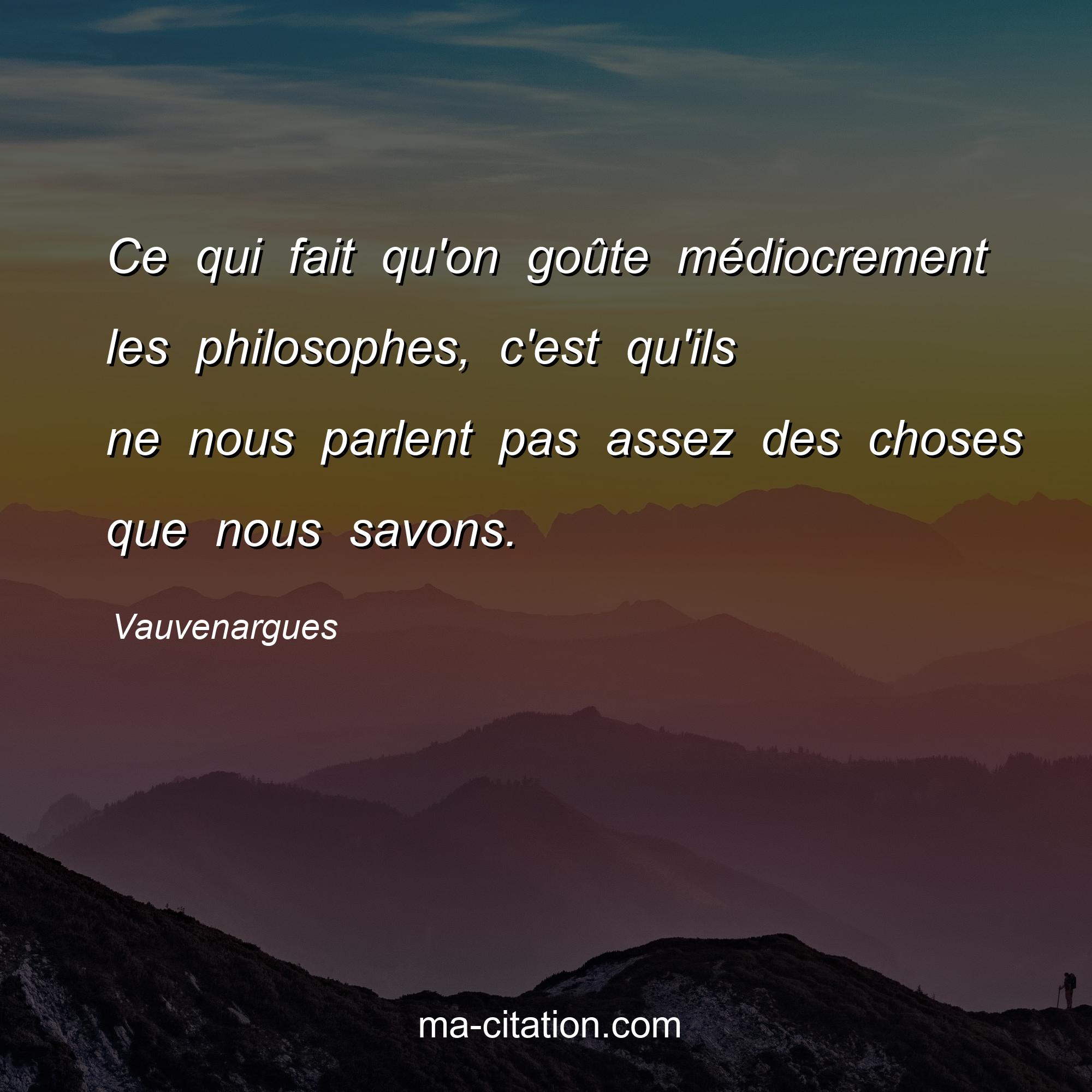 Citation sur la vie de Vauvenargues :Ce qui fait qu'on goûte médiocrement les philosophes, c'est qu'ils ne nous parlent pas assez des choses que nous savons.