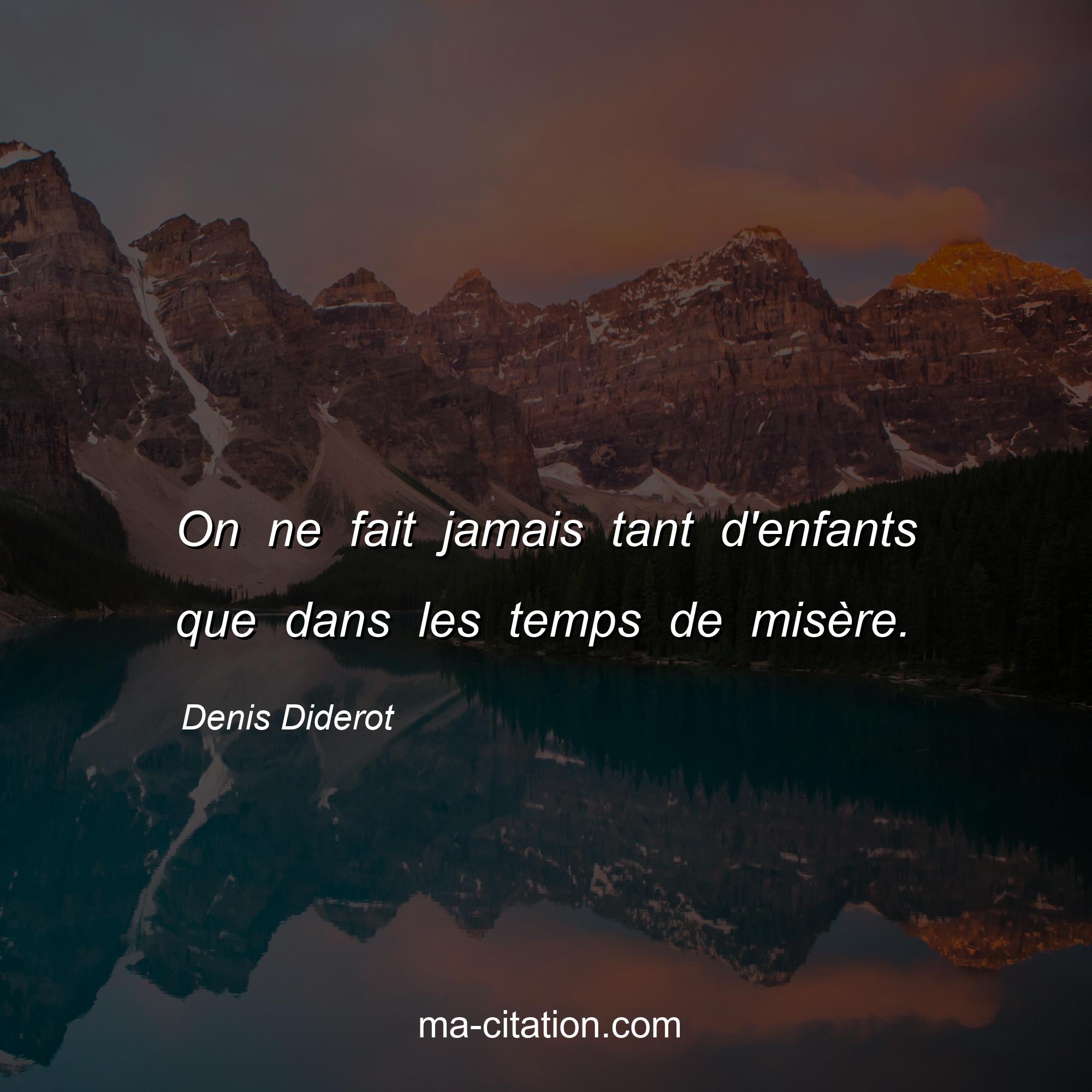 Citation sur la vie de Denis Diderot :On ne fait jamais tant d'enfants que dans les temps de misère.