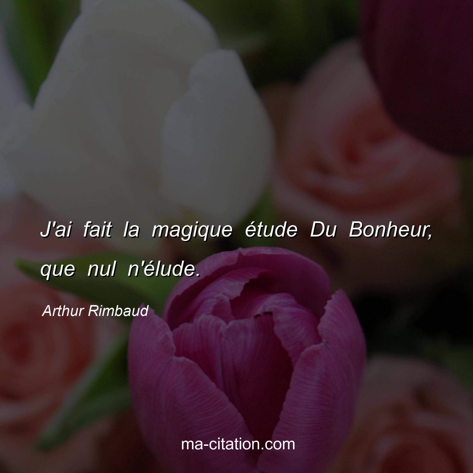 Citation sur la vie d'Arthur Rimbaud :J'ai fait la magique étude Du Bonheur, que nul n'élude.