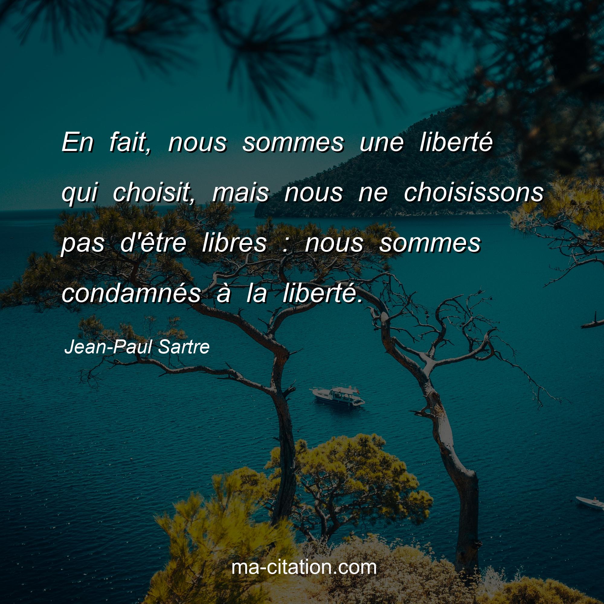Citation sur la vie de Jean-Paul Sartre :En fait, nous sommes une liberté qui choisit, mais nous ne choisissons pas d'être libres : nous sommes condamnés à la liberté.