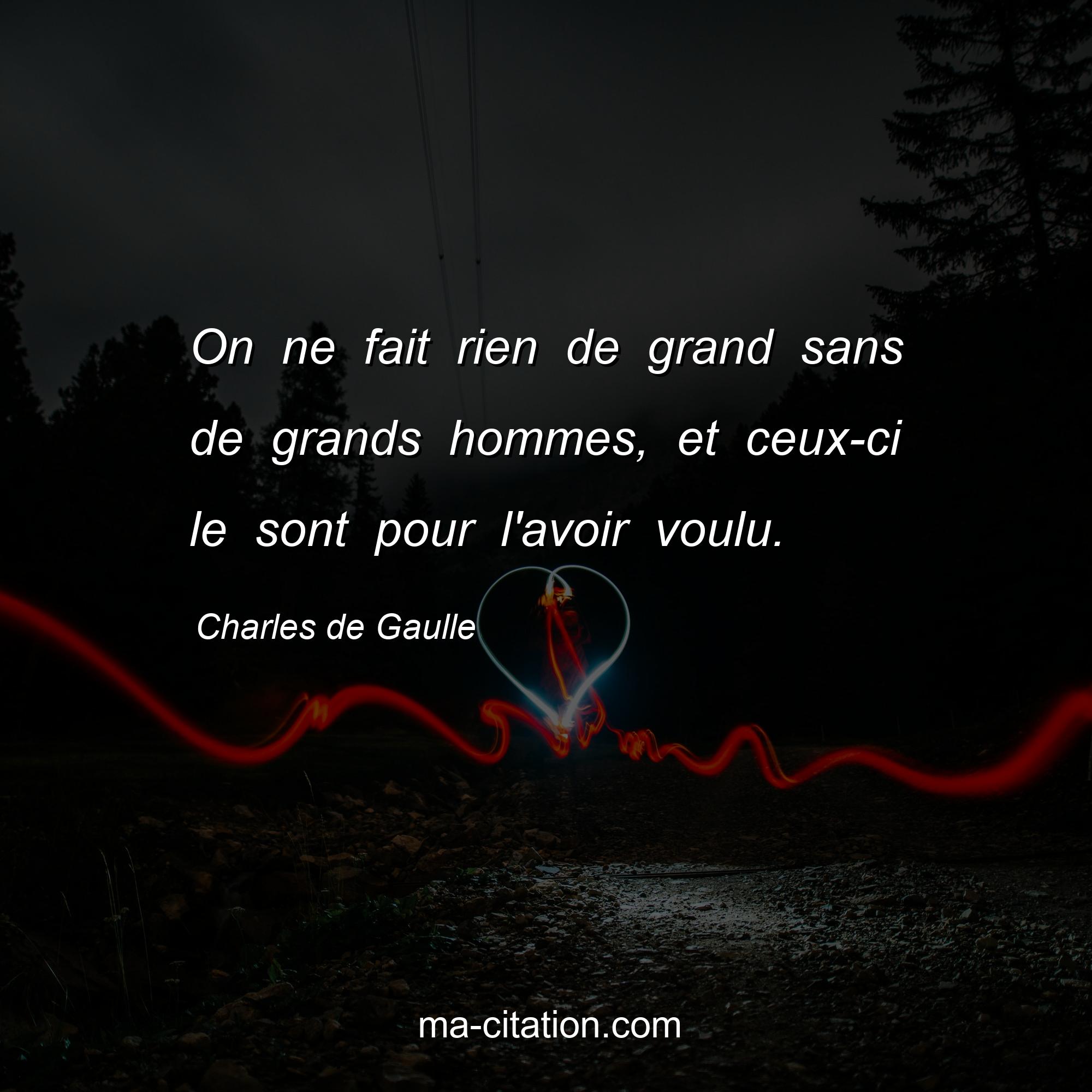 Citation sur la vie de Charles de Gaulle :On ne fait rien de grand sans de grands hommes, et ceux-ci le sont pour l'avoir voulu.