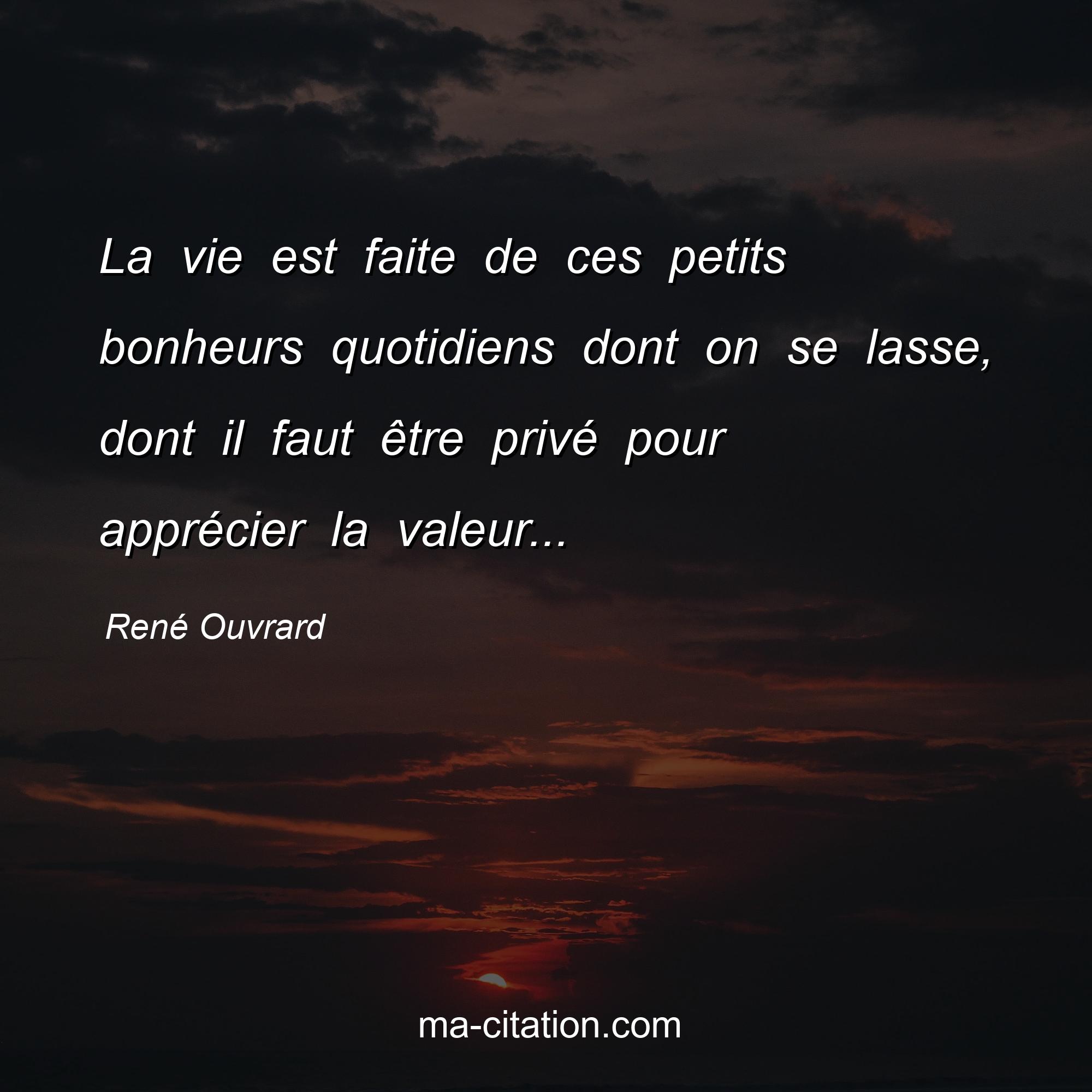René Ouvrard est l'auteur de la citation sur la vie "La vie est faite de ces petits bonheurs quotidiens dont on se lasse, dont il faut être privé pour apprécier la valeur...".