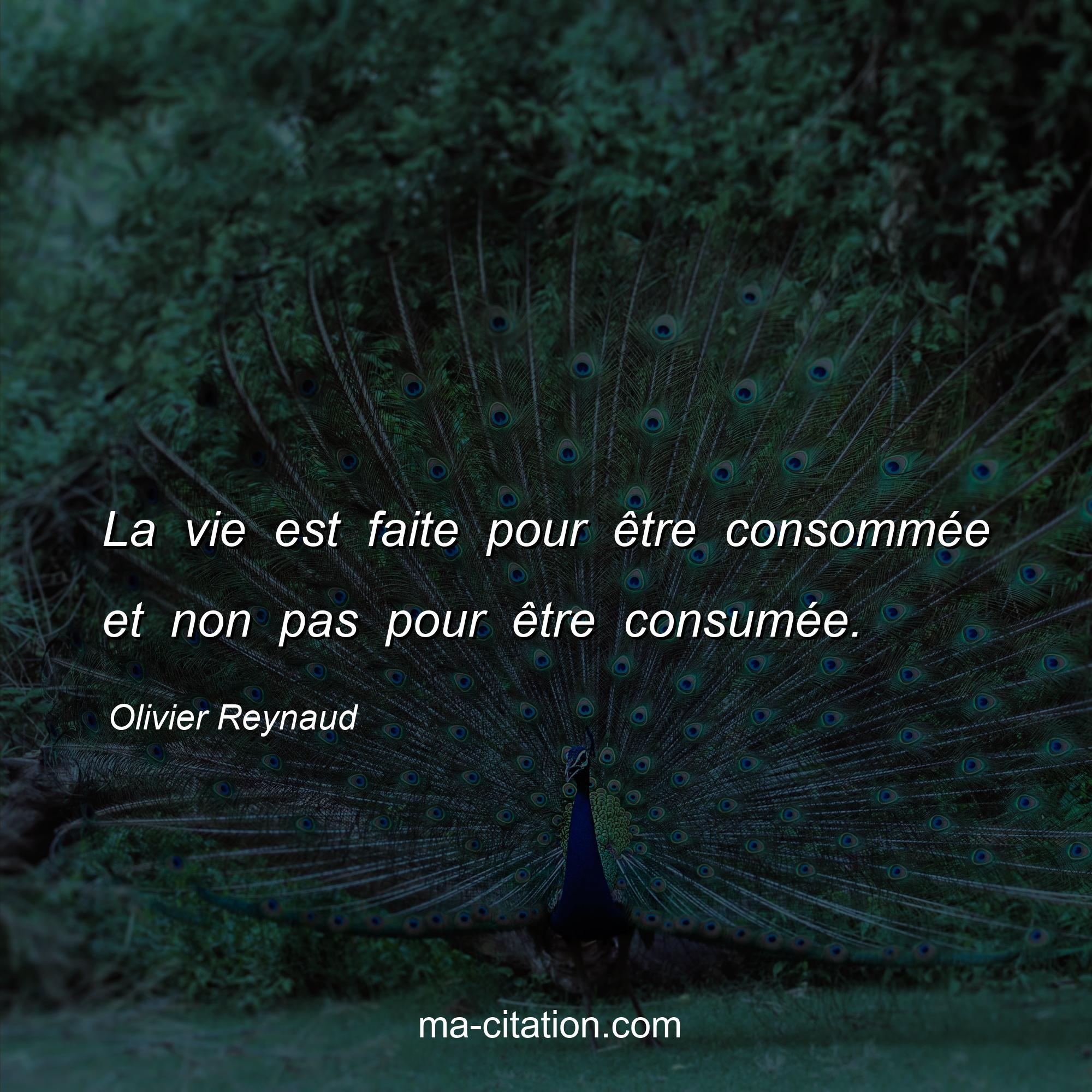 Citation sur la vie d'Olivier Reynaud :La vie est faite pour être consommée et non pas pour être consumée.