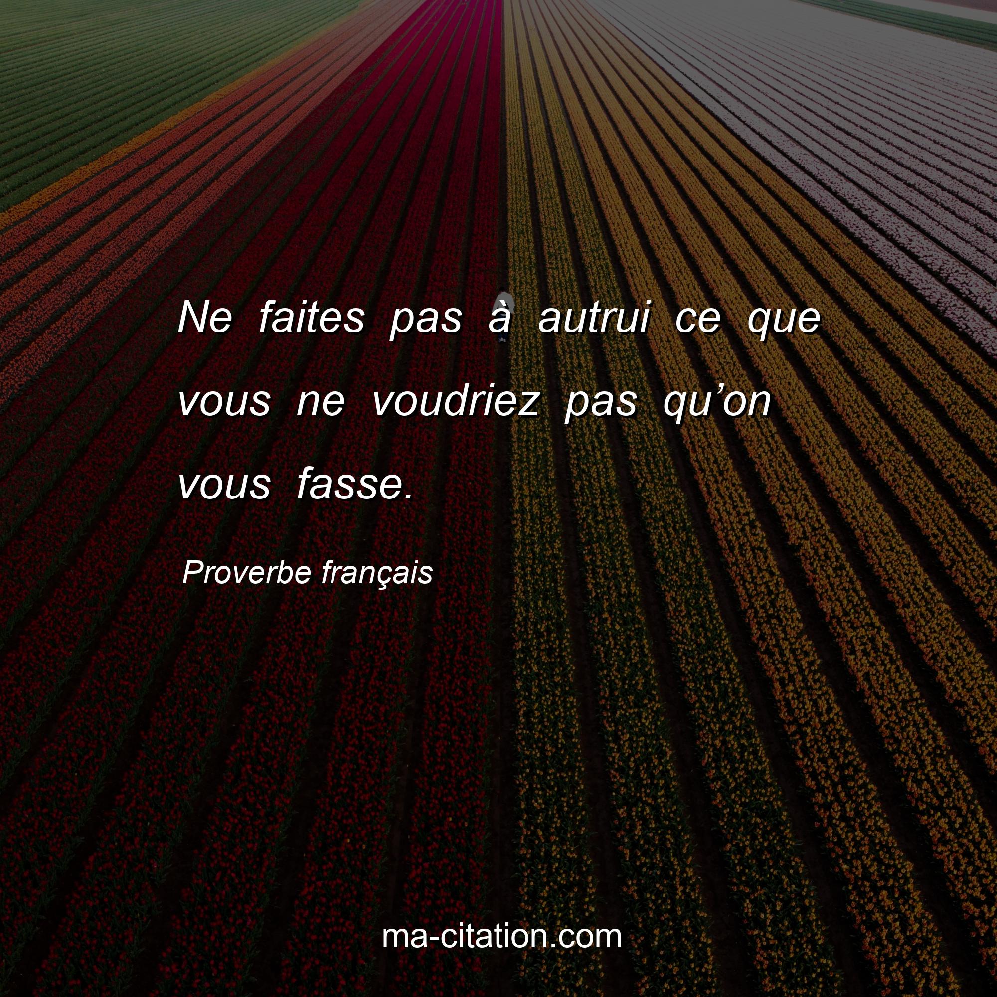 Proverbe français sur la vie :Ne faites pas à autrui ce que vous ne voudriez pas qu’on vous fasse.